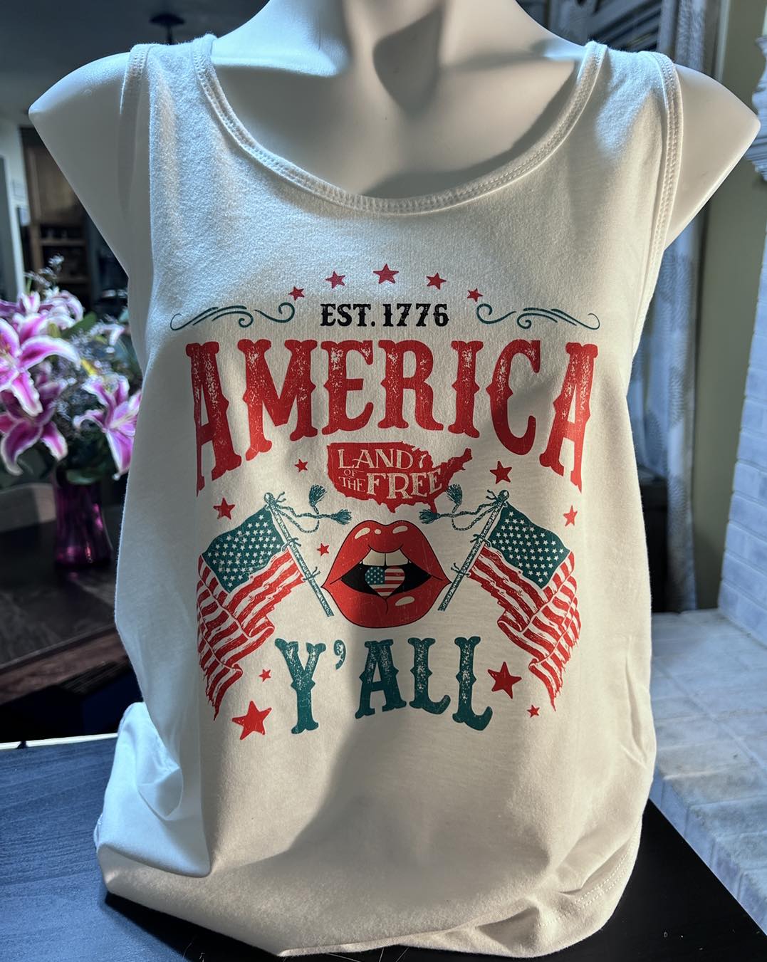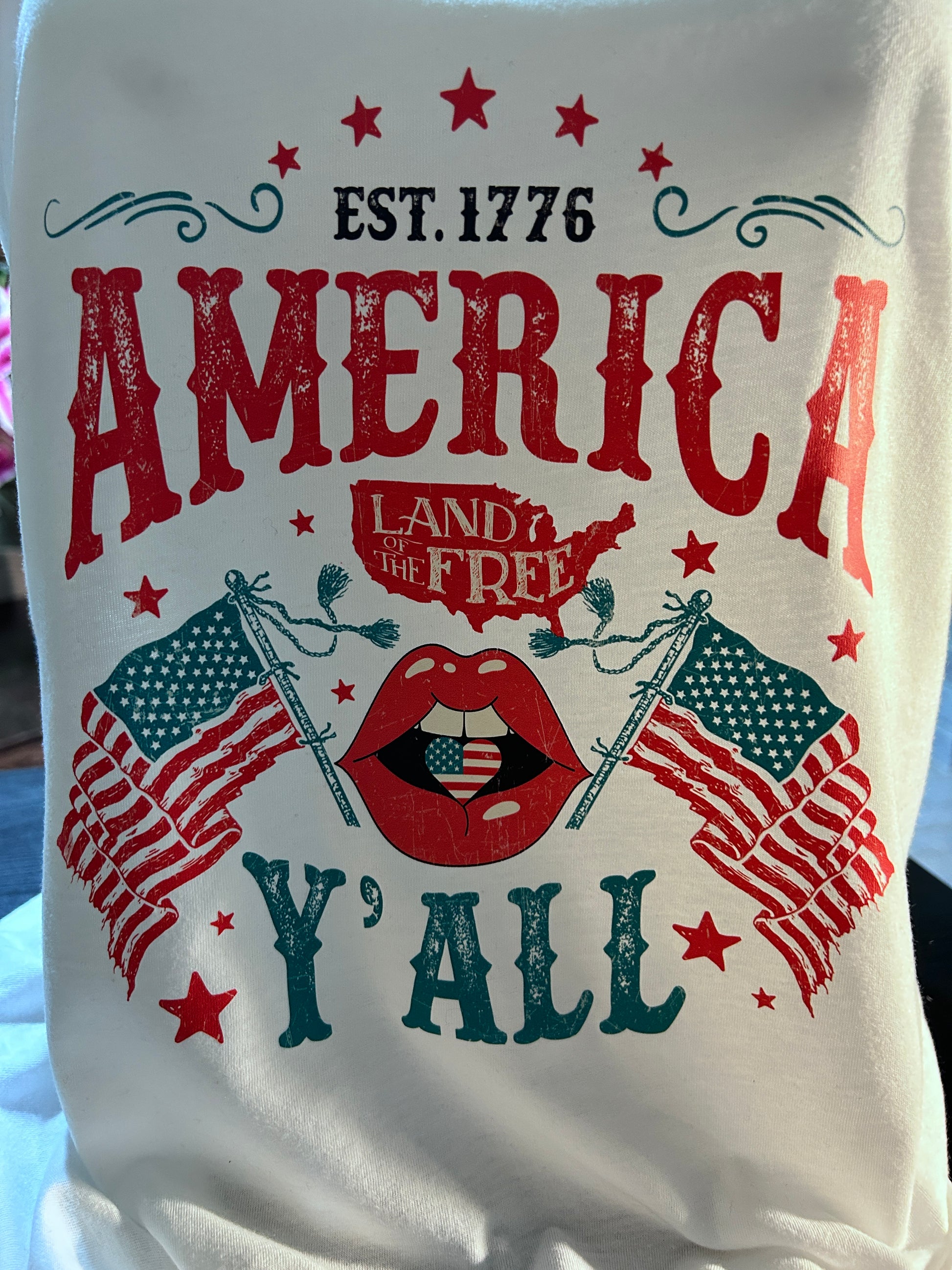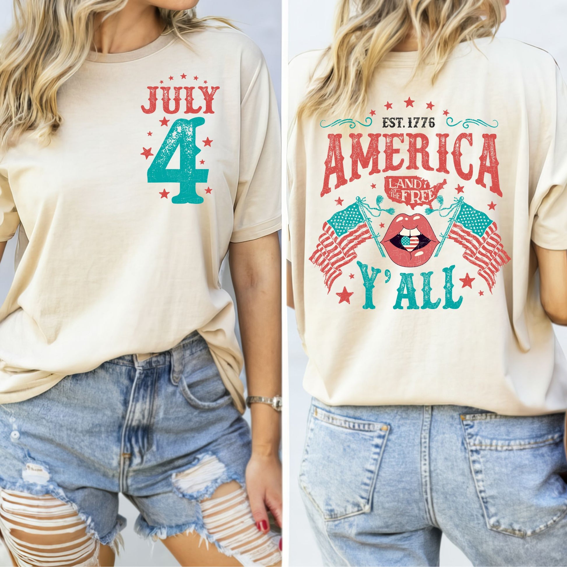 Feel the fireworks with this eye-catching 4th of July tee! This America Yall 4th of July Inspired Tee adds flair to your patriotic style with a trendy front pocket design and bold "America Y'all" printed across the back. Show your love for the red, white and blue in a tee made for proud American women. The full back print ensures your American pride shines through from every angle. With its soft fabric and relaxed fit, you'll stay comfy at the BBQ or fireworks show. Celebrate your freedom in fashionable style with this must-have 4th of July top!