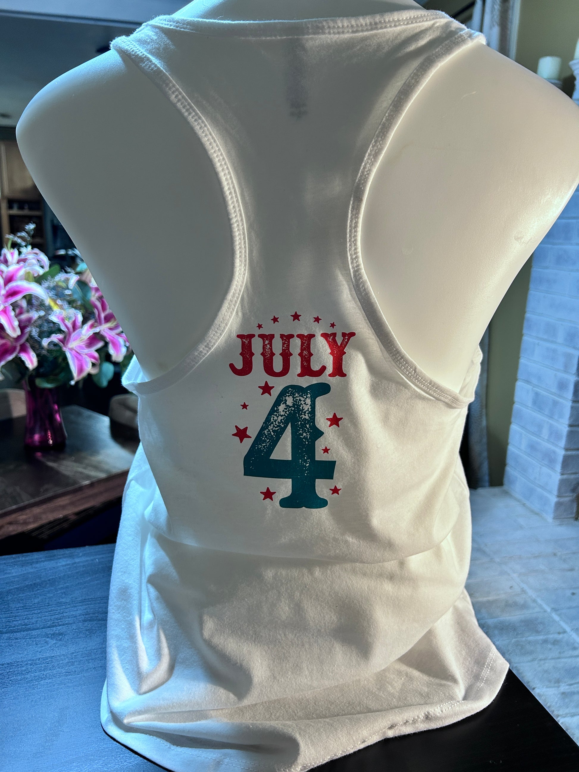 This design is also available on a racerback tank, reversing the large image for the front and the pocket logo to the back as an added touch to the tank style.