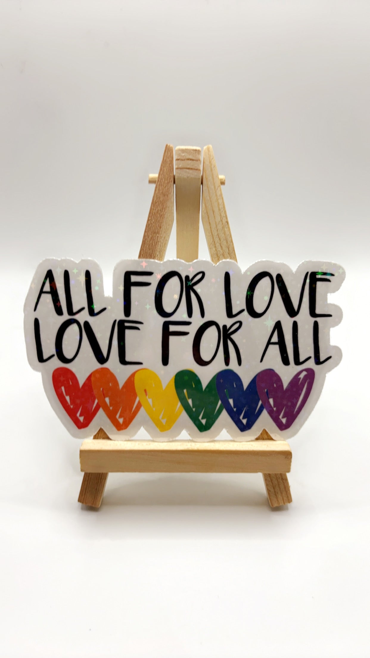 Express your love and support with our captivating "All For Love, Love for All" sticker. This unique design serves as a powerful reminder of unity, acceptance, and the importance of love in all its forms.