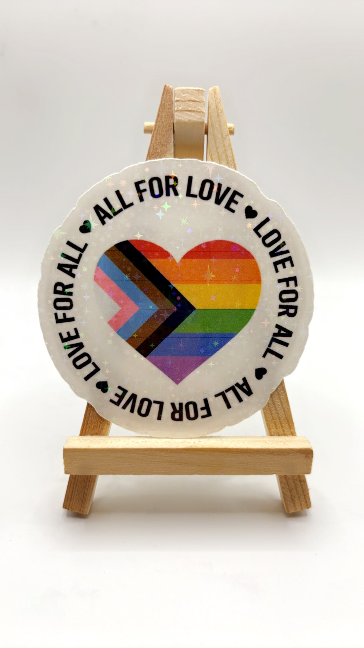 This sticker is not just an accessory; it embodies a message of love that resonates with everyone. By displaying the All For Love, Love For All Sticker, you actively participate in promoting kindness and acceptance in your community.