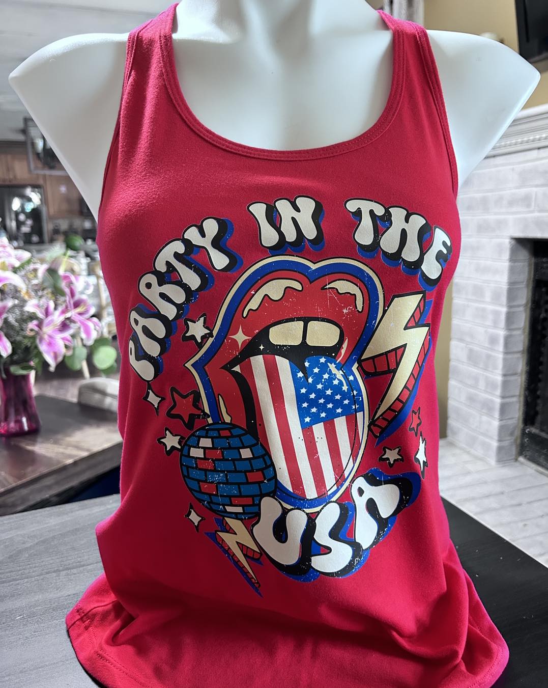 Get ready to celebrate the 4th of July in style with our "Party in the USA" Groovy Patriotic Women's Tee! This stunning tee features a chic front pocket design and a striking "Party in the USA" print on the back, perfect for showing off your patriotic spirit. Made for proud American women, this tee boasts a full back print that ensures your love for the red, white, and blue is on full display.
