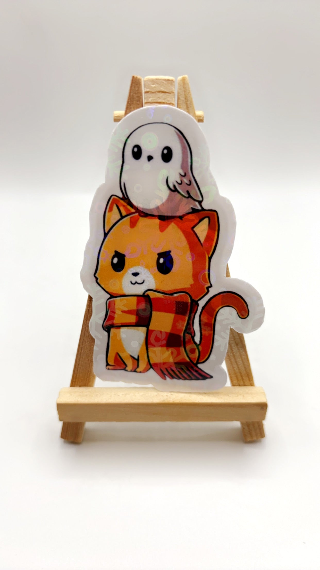 Embrace your love for whimsical art with our delightful Cat and Owl Sticker! Perfect for adding a touch of personality to your belongings, this sticker is not just an accessory, but a statement of your unique style.