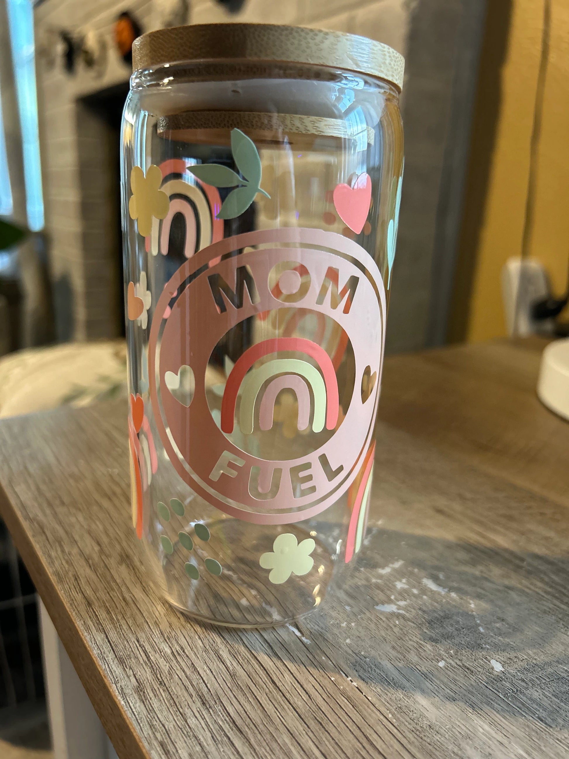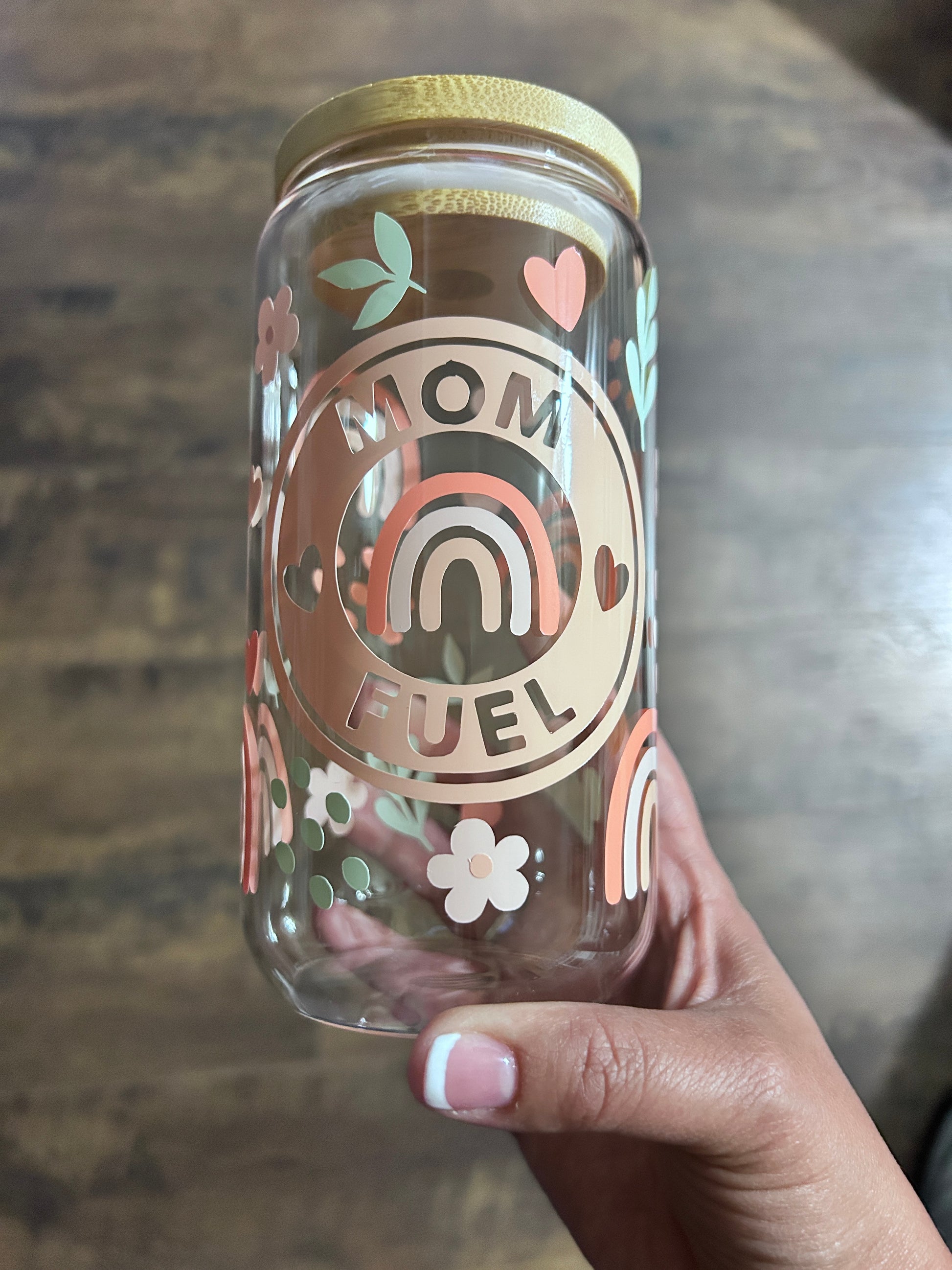 This cute drinking glass iced coffee cup is not only functional but also stylish. Its standout feature is the "Mom Fuel" label that adds a touch of personality and humor to your morning routine. It's an ideal gift for any mom who loves her daily dose of caffeine.