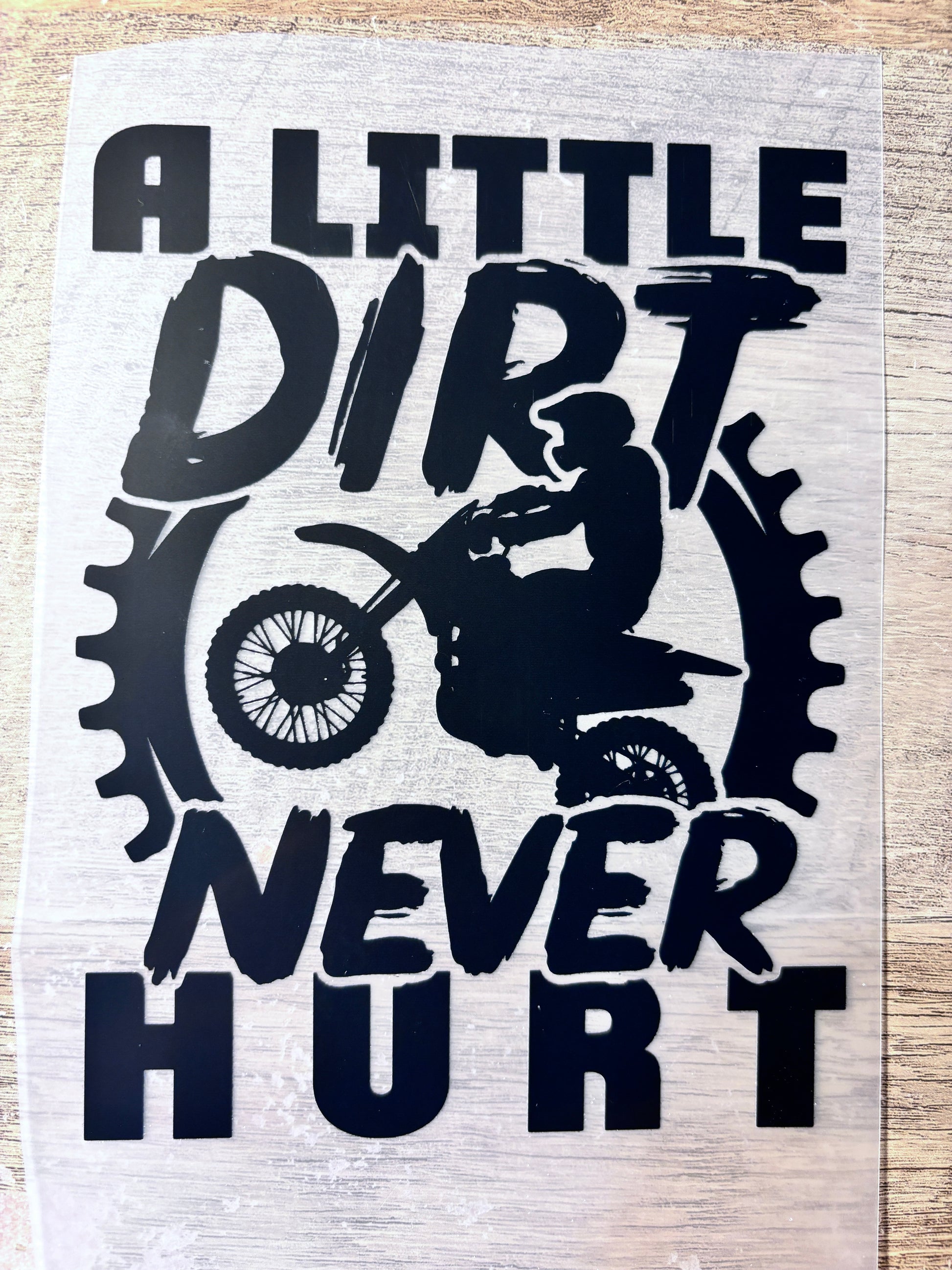 Unleash your creativity with our premium DTF Transfer, designed to make your custom apparel truly stand out. With our unique design, "A Little Dirt Never Hurt," you can express a fun and adventurous spirit in your style.