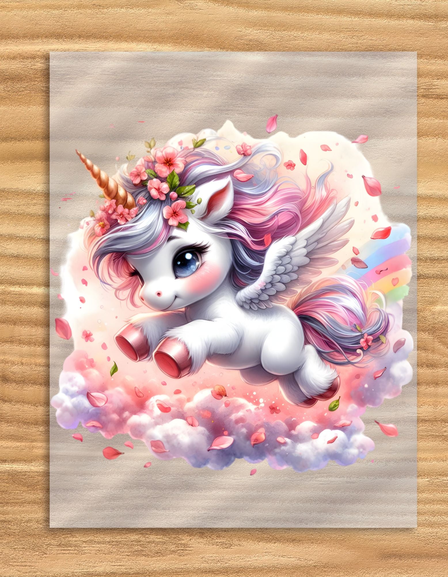 Transform Your Apparel with DTF Transfer: Baby Unicorn in Clouds