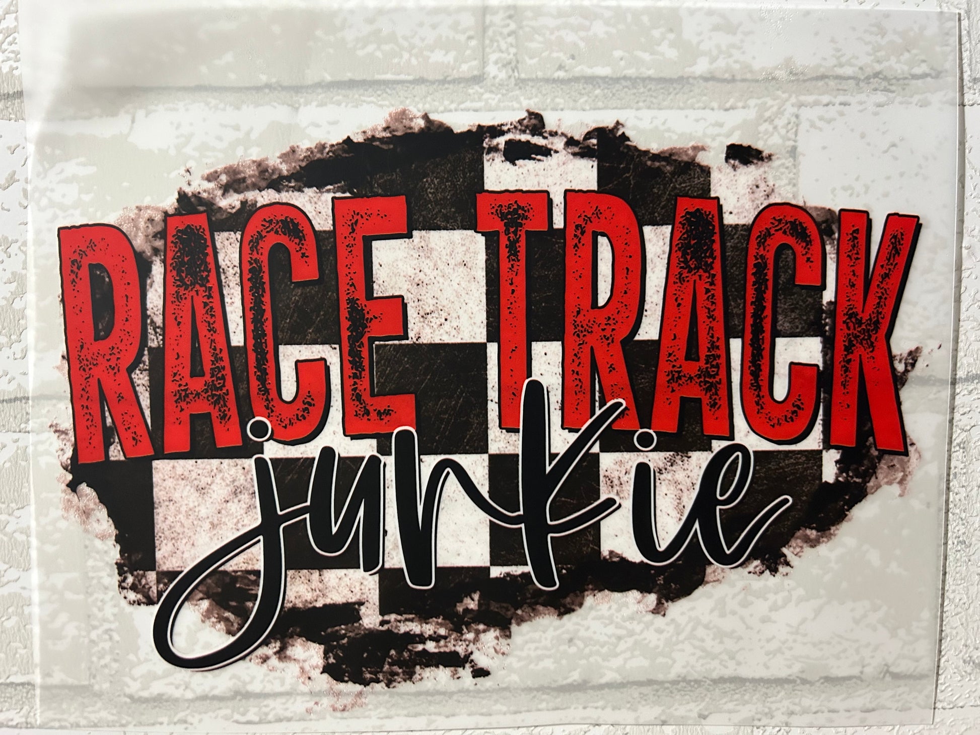 Ready, set, style! The "Race Track Junkie" DTF transfer is the ultimate way to add a playful, fun touch to your little one's custom apparel. Featuring vibrant, long-lasting colors and a high-quality, durable design, this transfer is perfect for t-shirts, hoodies, and more. With an easy-to-use application, they'll be crossing the finish line in style in no time.