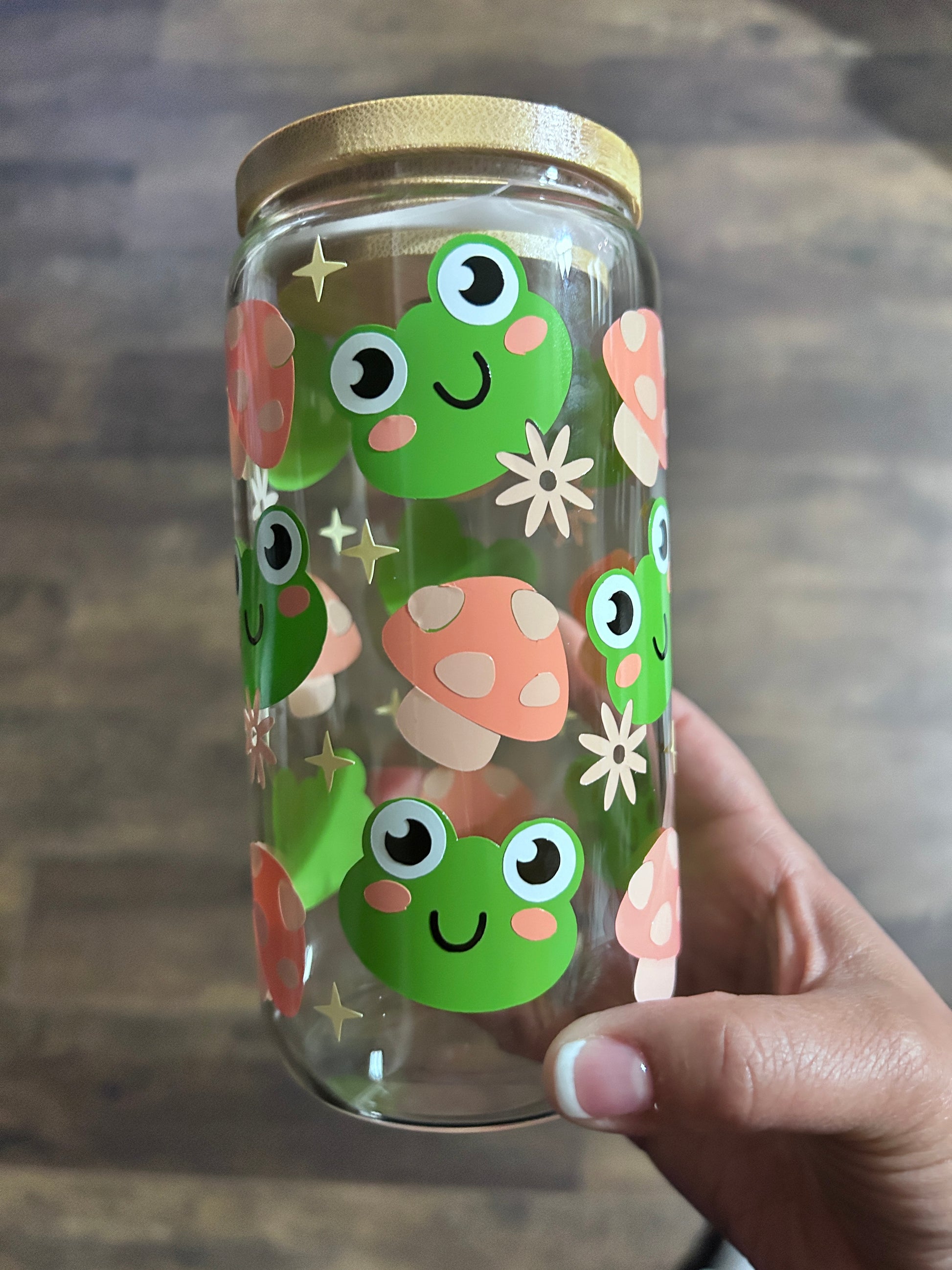 Kawaii Frog and Mushroom Glass Cup for Cute Drinkware