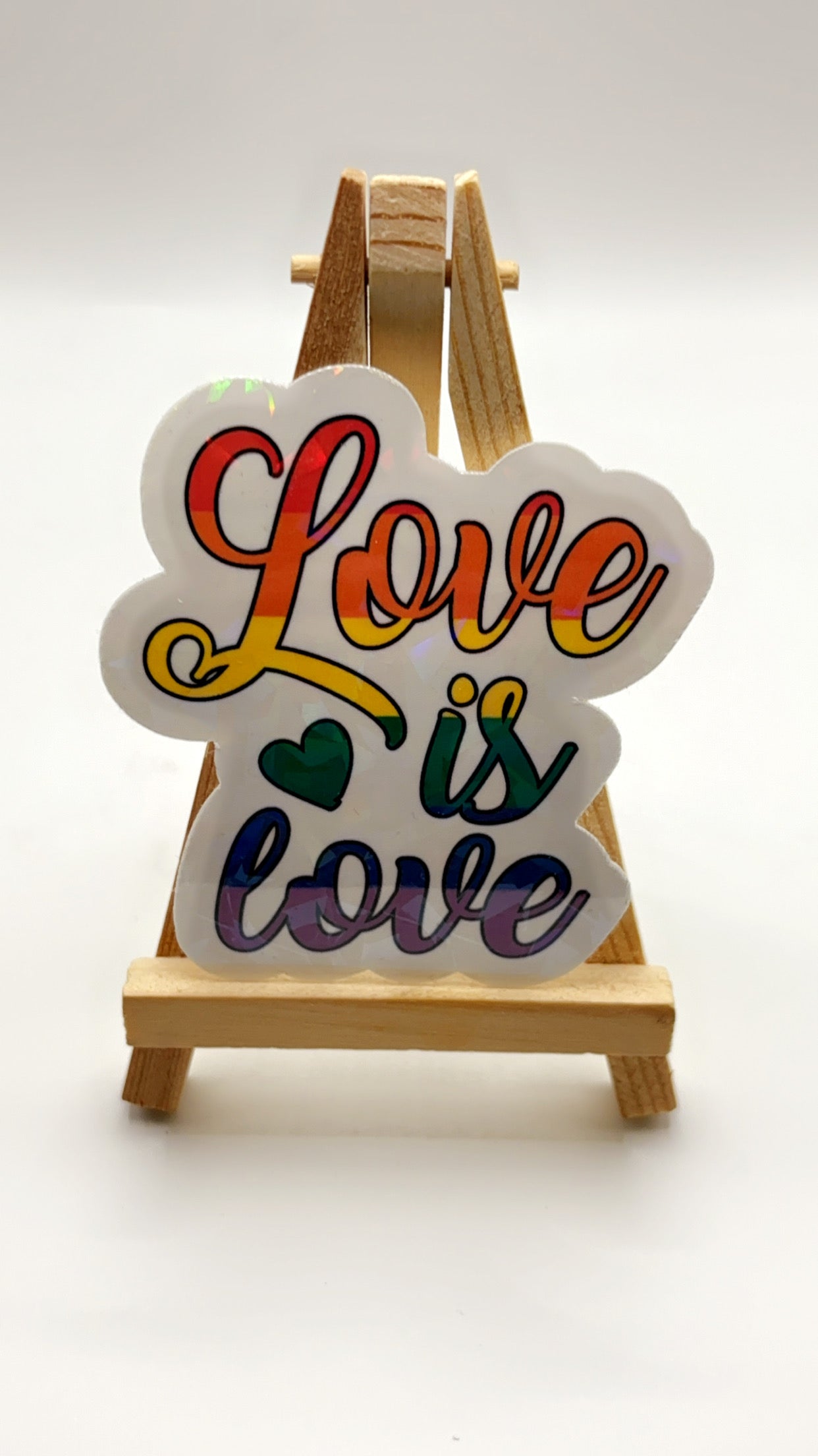 Express your beliefs and support for equality with our vibrant "Love is Love" sticker. This unique accessory is more than just a decoration; it's a statement of inclusion and acceptance.