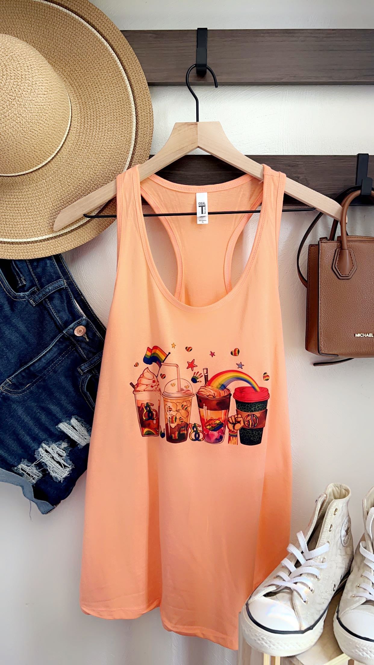 Embrace Your Pride: Show off your support for the LGBTQ+ community with our vibrant Pride Drinking Cups Women's Tank. This unique piece is not just a tank; it’s a statement of love, acceptance, and celebration.