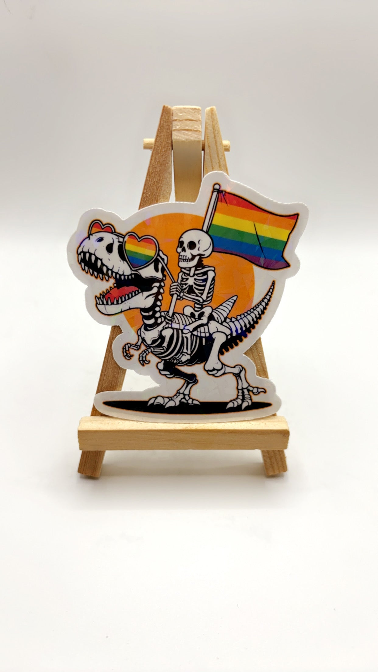 Get your Skeleton Riding Dinosaur Pride Sticker today and make a statement that roars with creativity and pride!