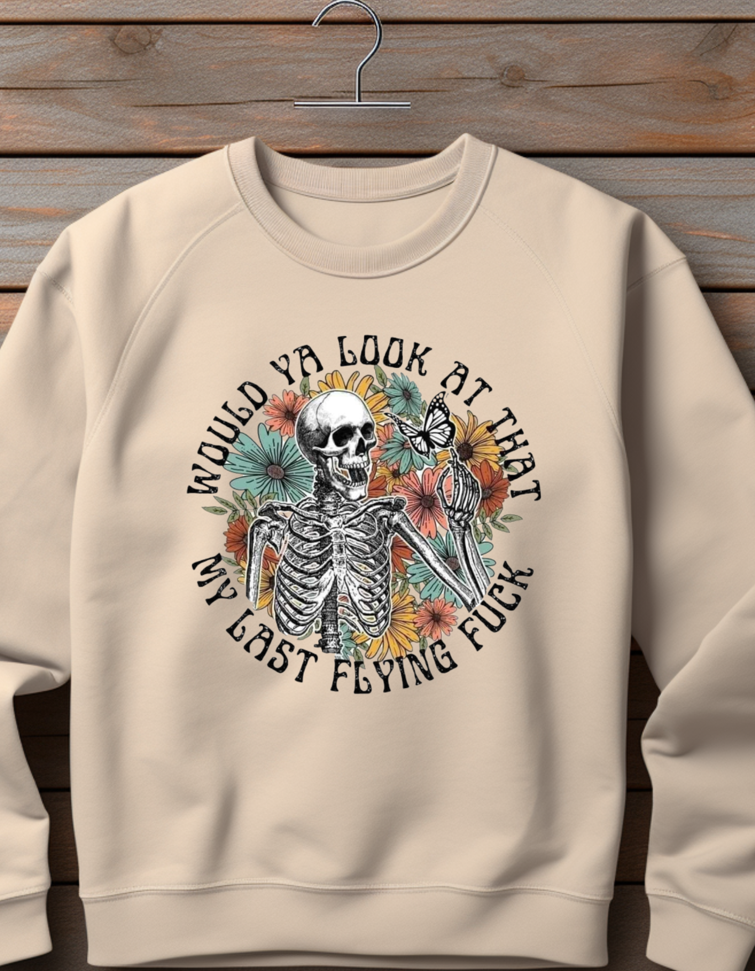 Eye-Catching Skeleton Floral Crewneck Sweater: My Last Flying F*** Edition