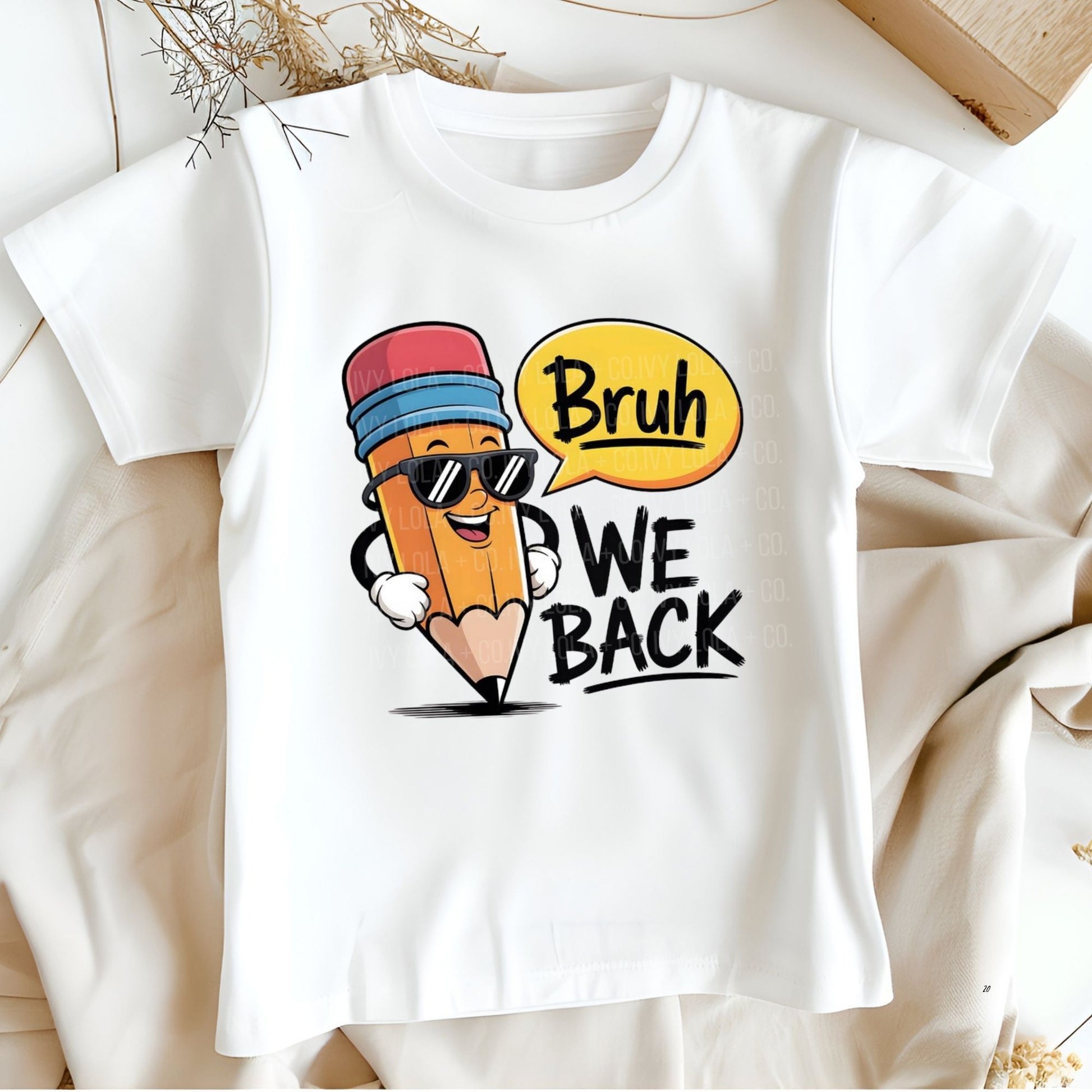 Bruh We Back Retro Pencil Tee for Students Back to School
