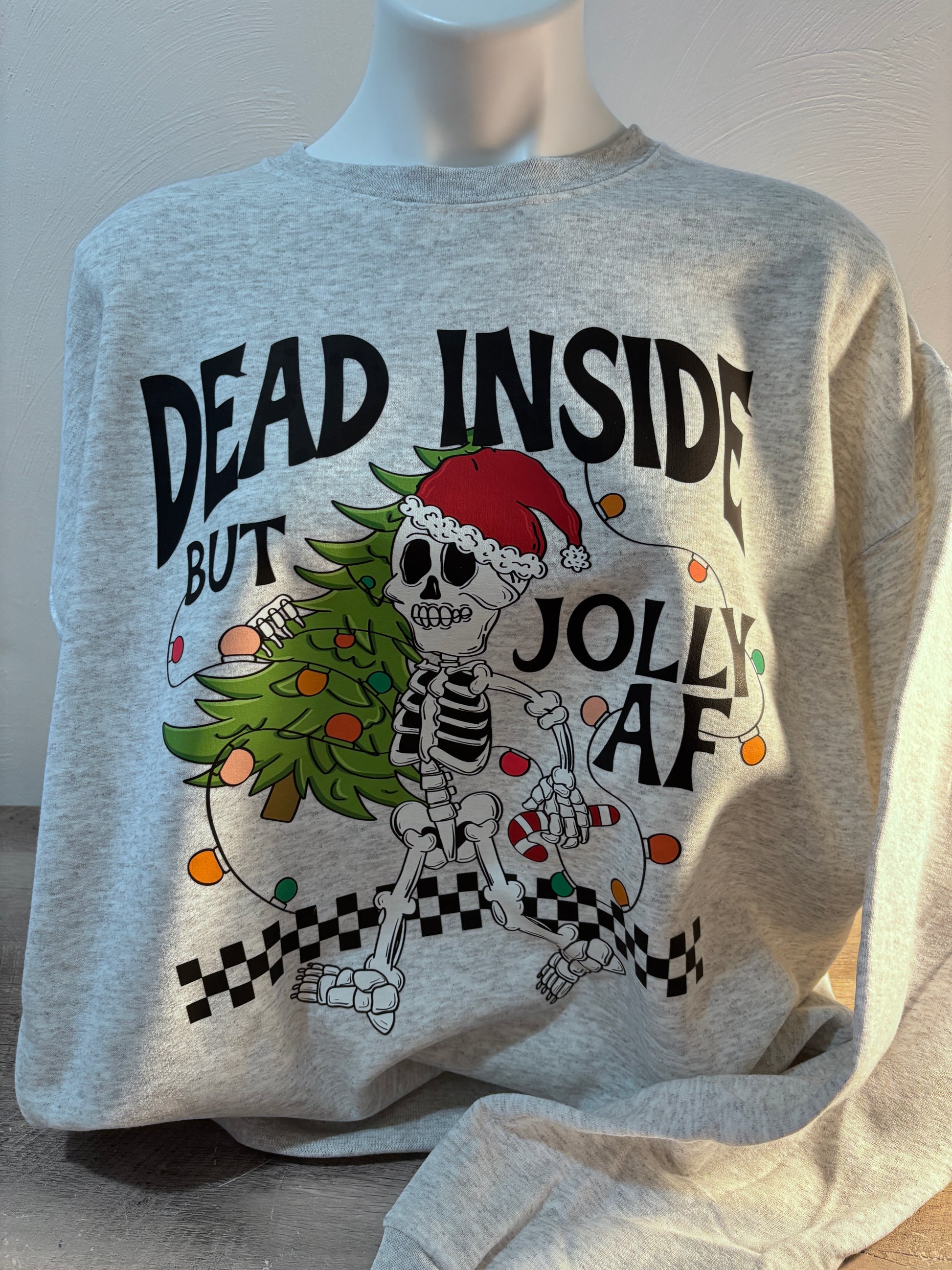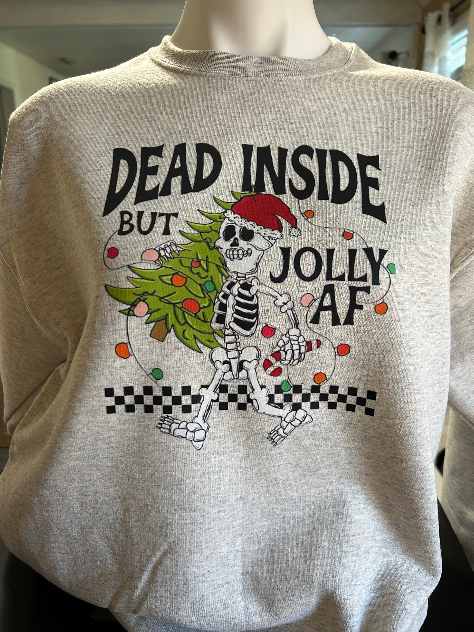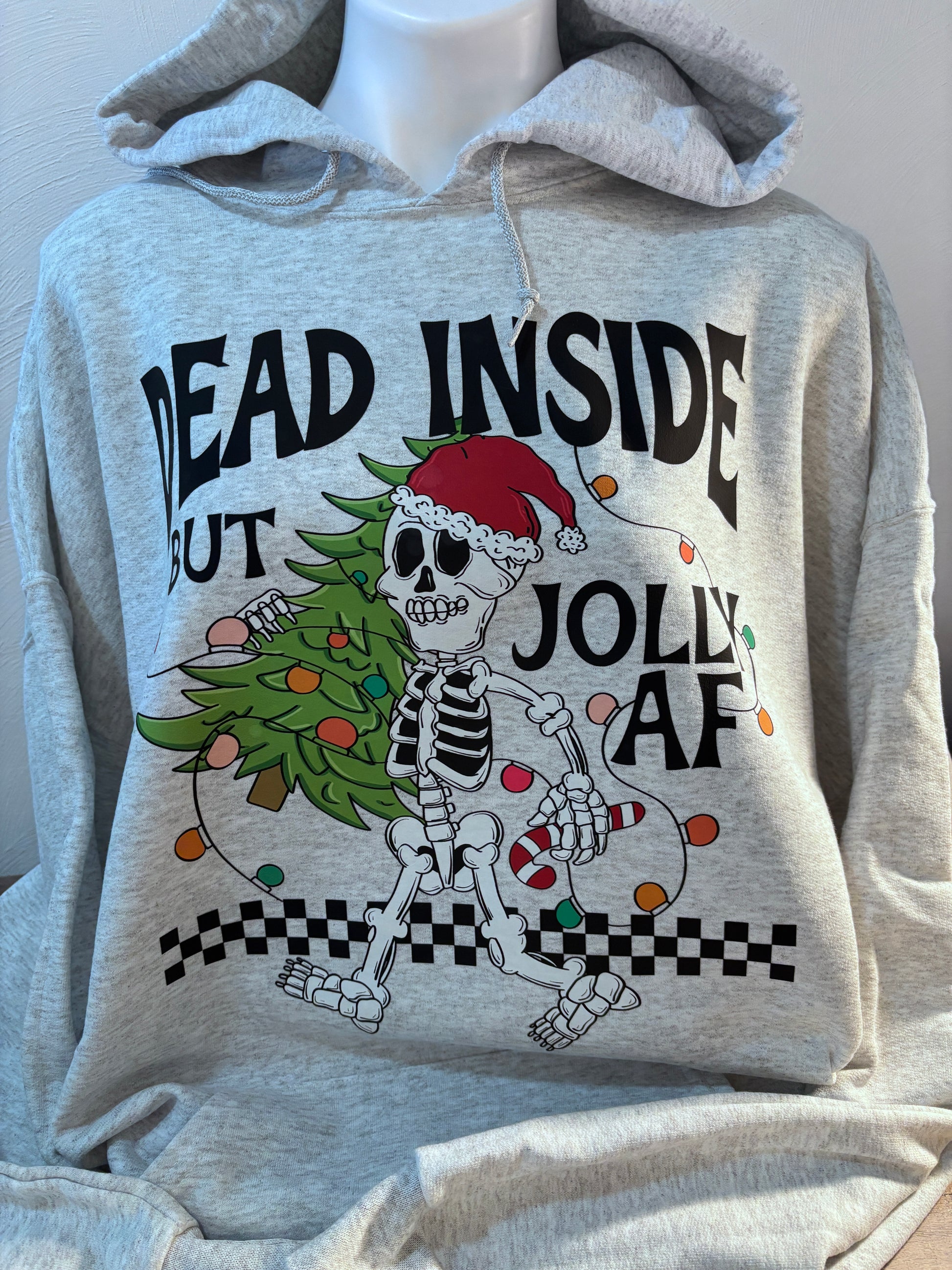 Introducing the latest addition to our holiday collection to kick off the Christmas season! This design is available in a Crewneck Sweater or Classic Fit, Pullover Hoodie. Crafted with premium fabric materials, either option will boast a soft and warm texture that is perfect for the colder months. Experience the ultimate comfort and style with a vivid, bright, sharp print that is fade proof, making it a durable and long-lasting addition to your wardrobe. This custom design is sure to make a statement for Skeleton and Christmas fans alike. Dead Inside But Jolly AF! is casual for everyday wear but can get attention at any holiday party. It is a must have for the holiday season- so order yours today!