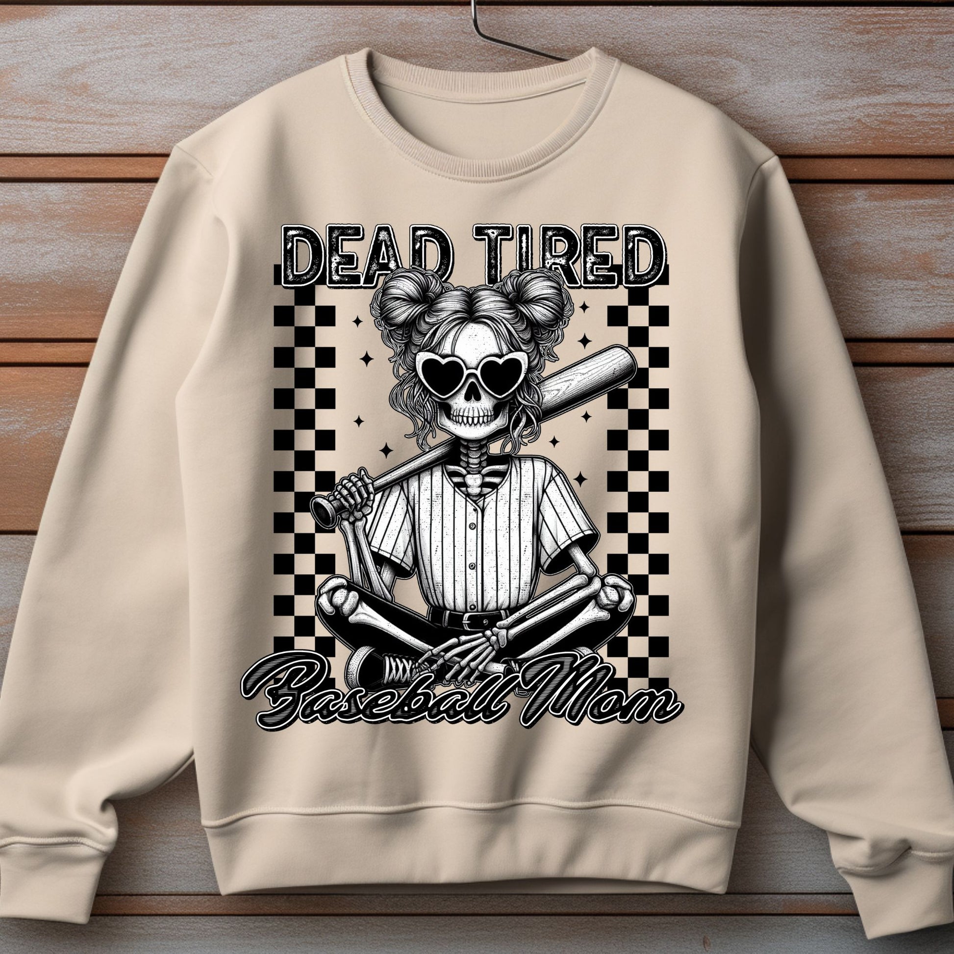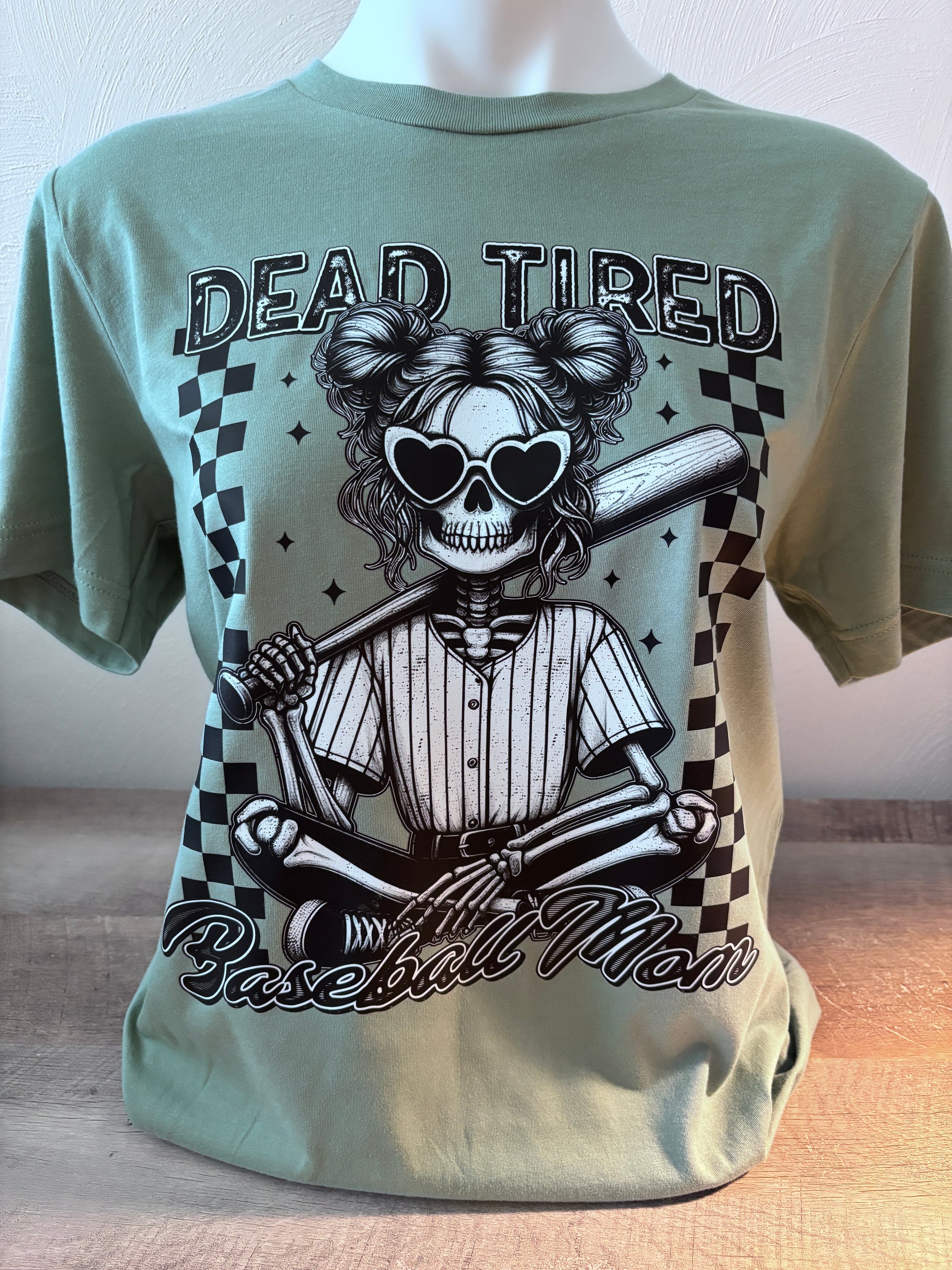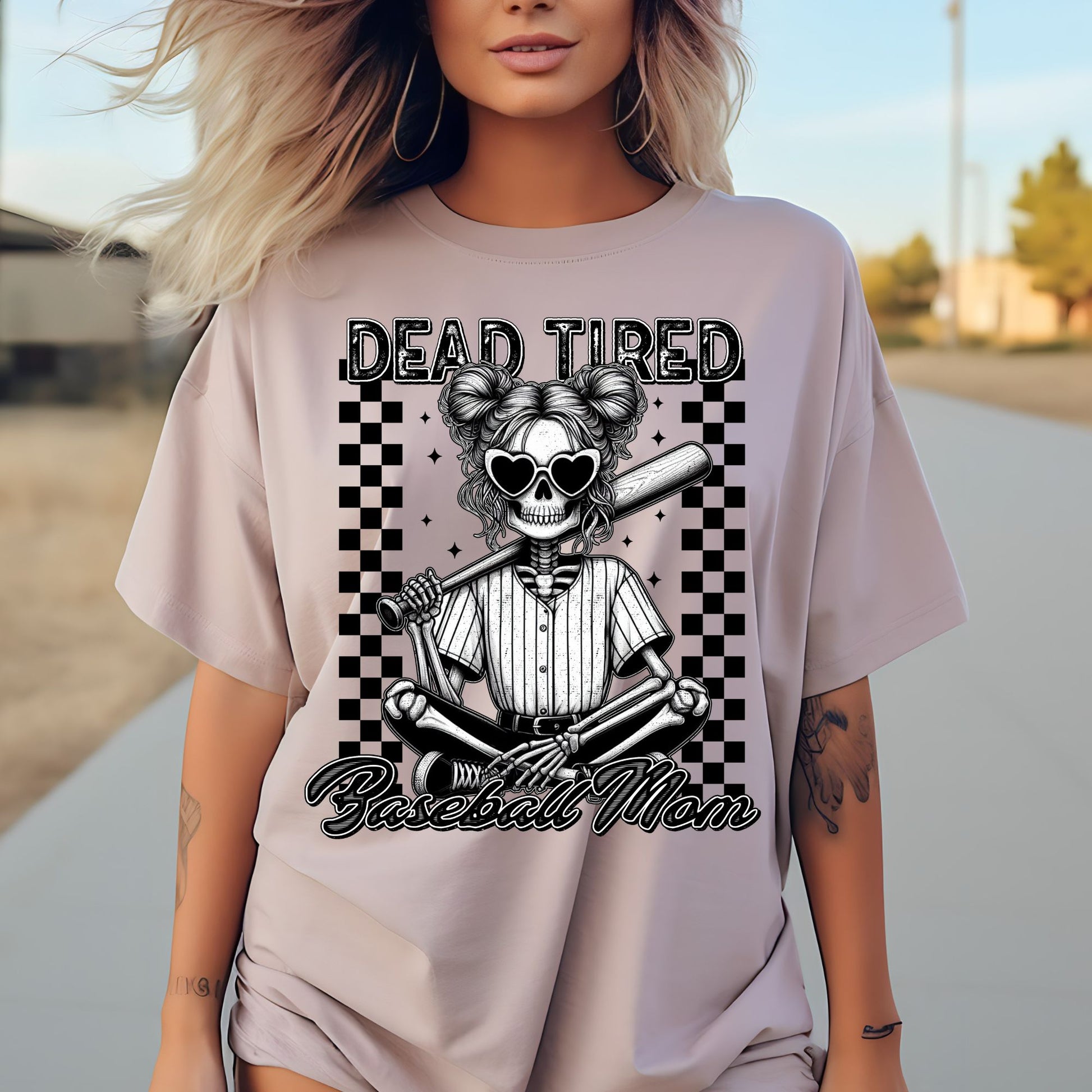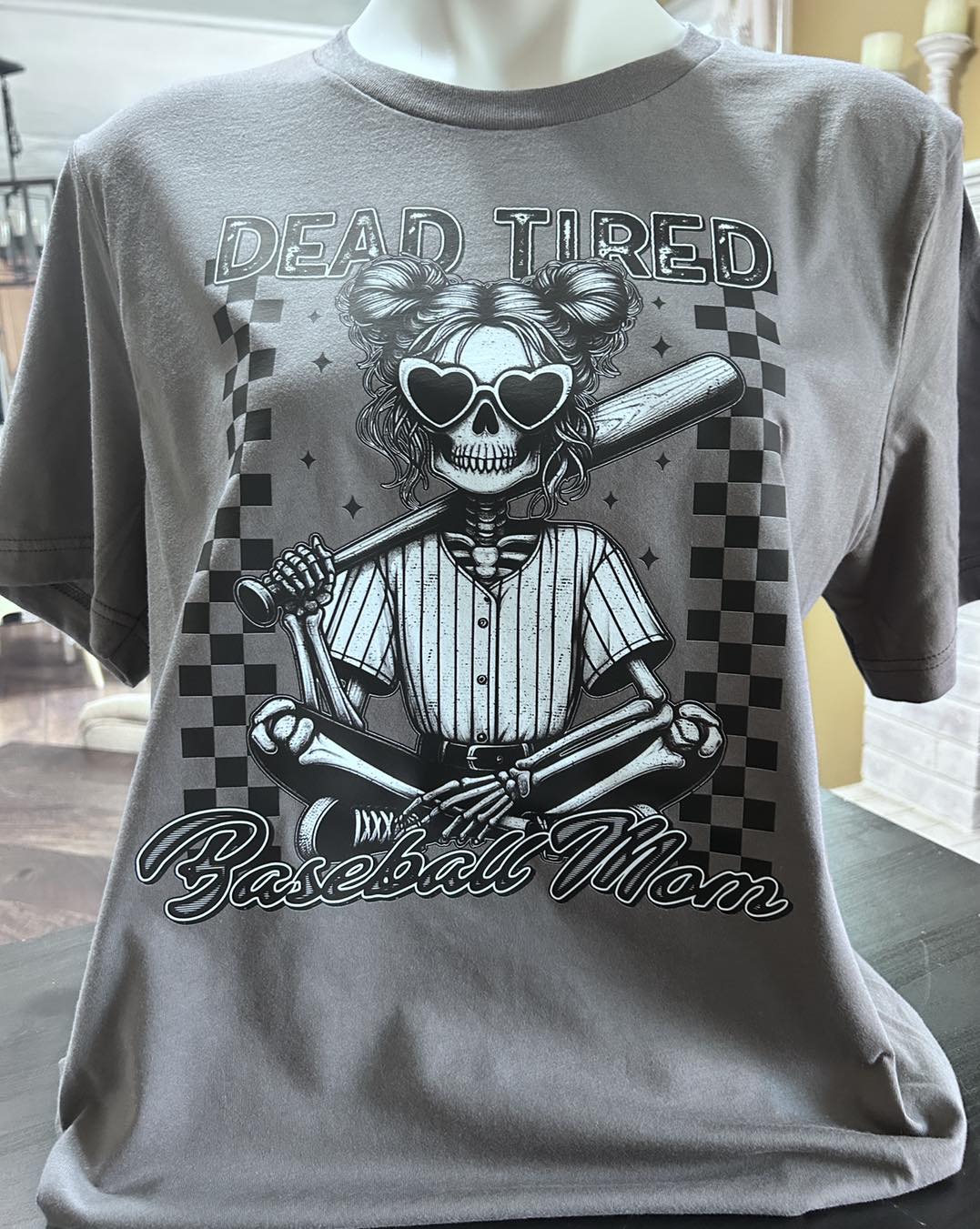 • Soft and comfy t-shirt with a "Dead Tired Baseball Mom" Skeleton graphic