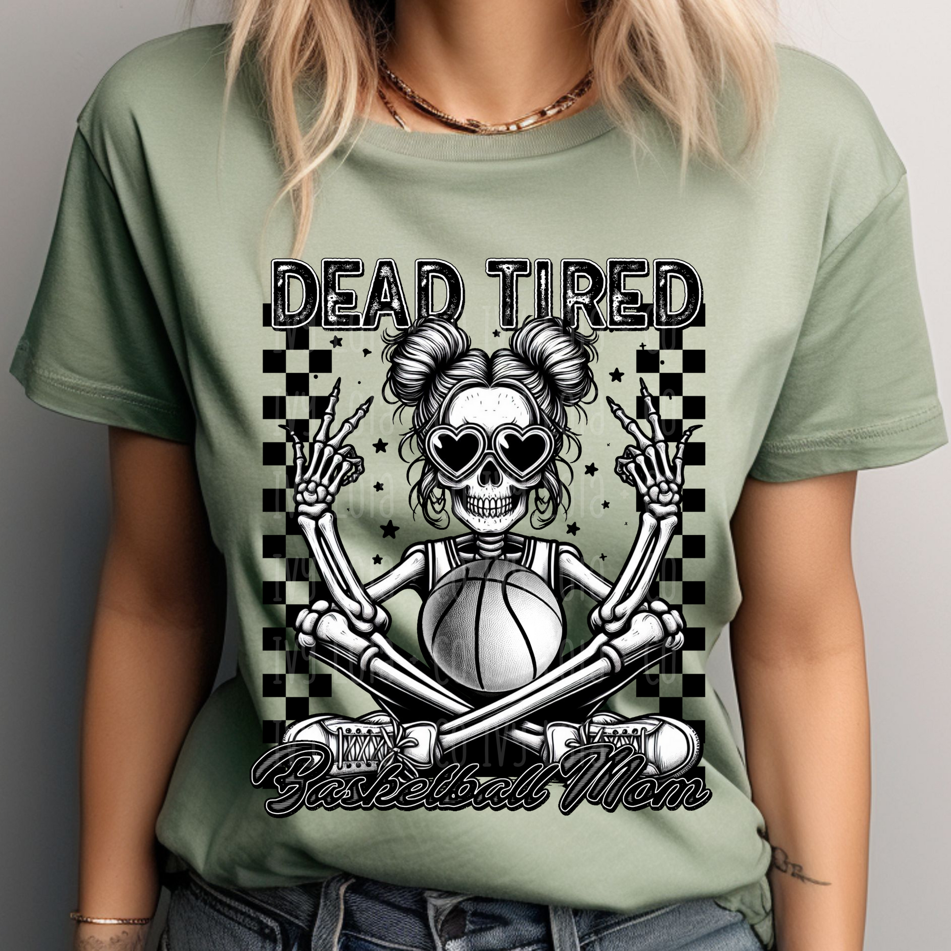 - Soft and comfy t-shirt with a "Dead Tired Basketball Mom" Skeleton graphic