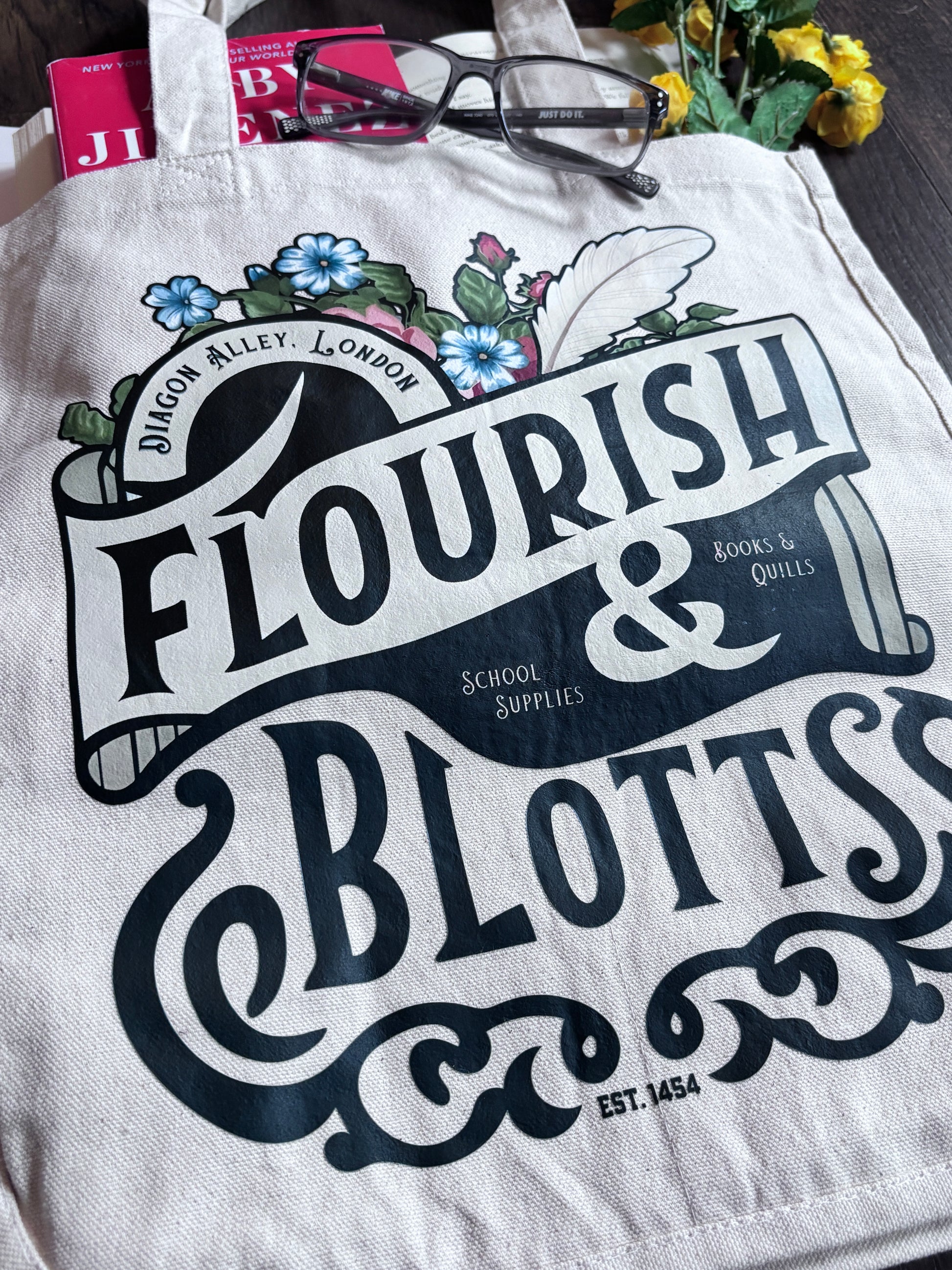 Flourish and Blotts Book Tote for Book Lovers and Wizards