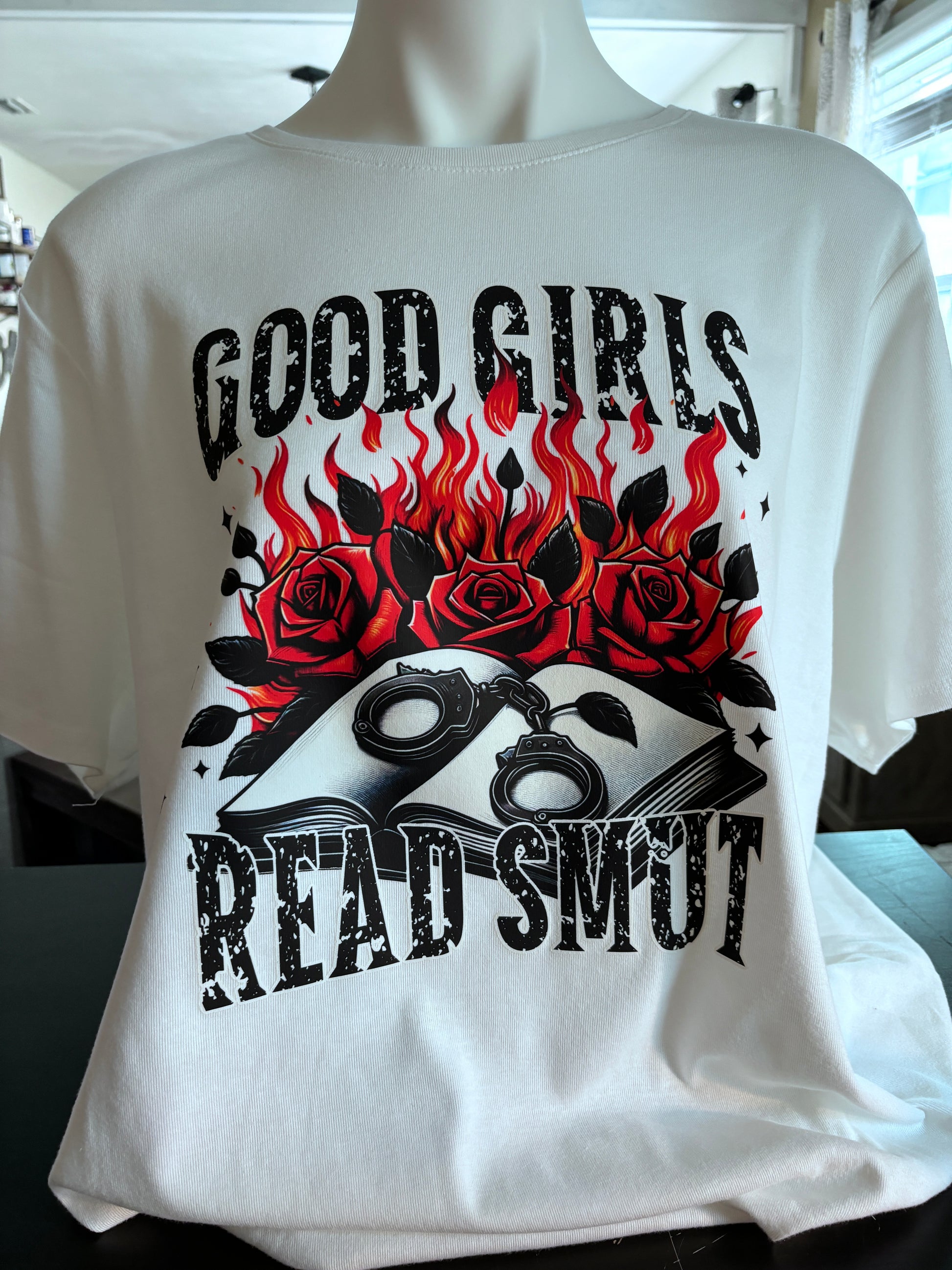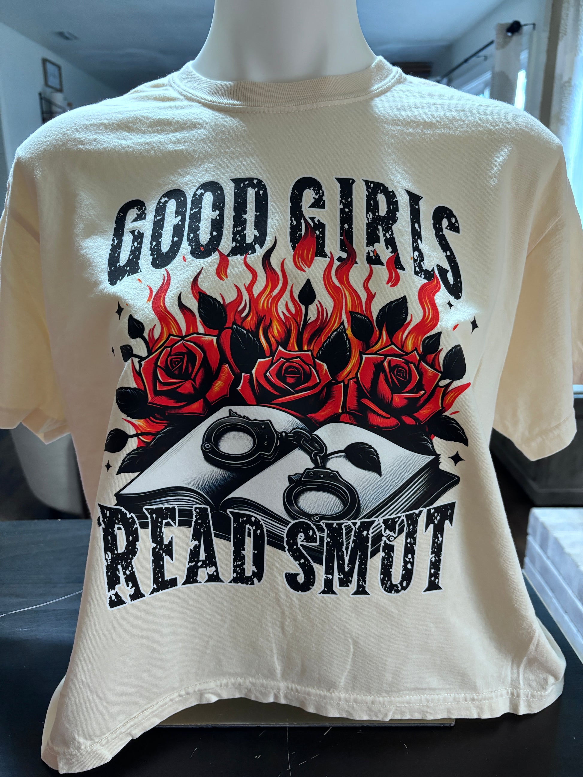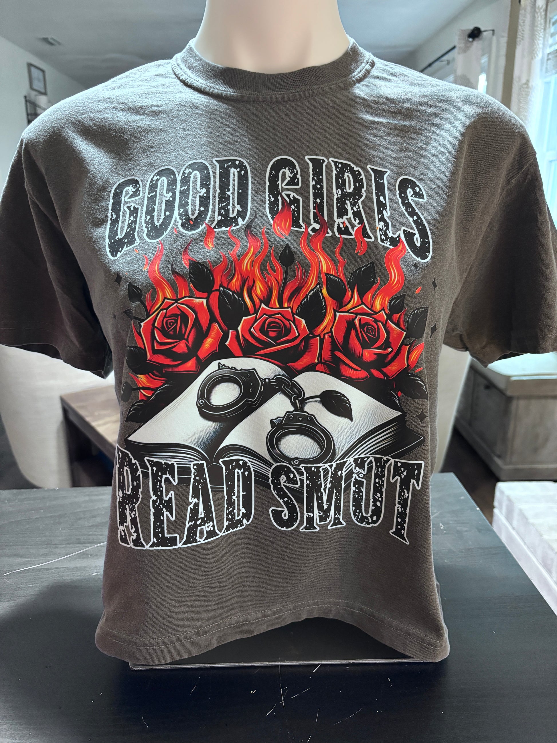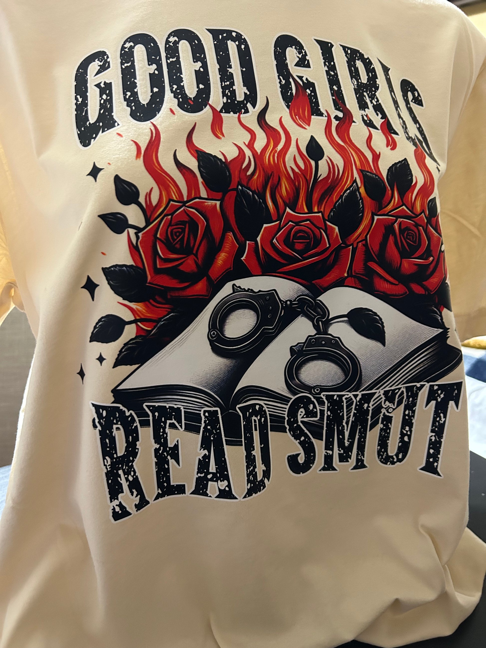 Tired of boring t-shirts? Spice up your look with the cheeky Good Girls Read Smut tee!