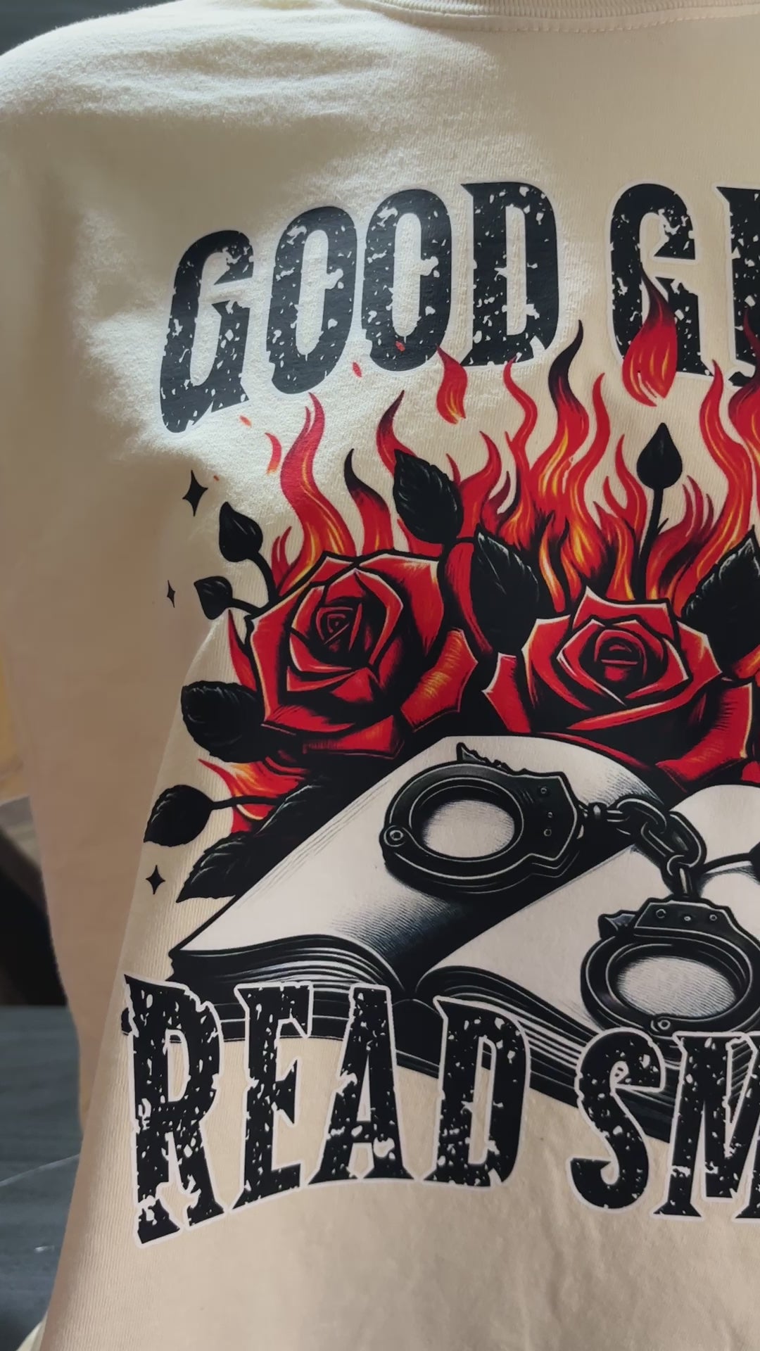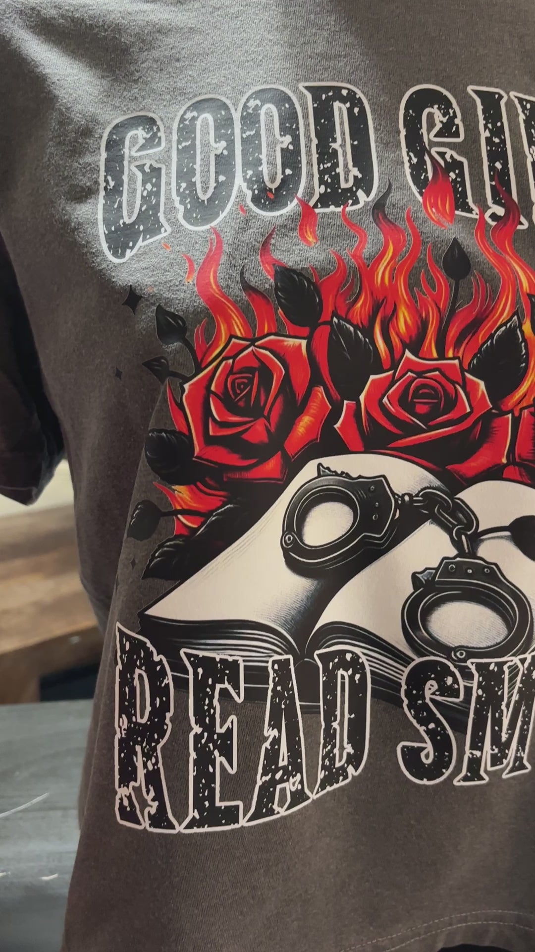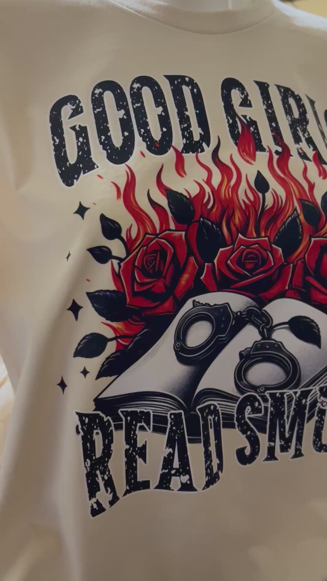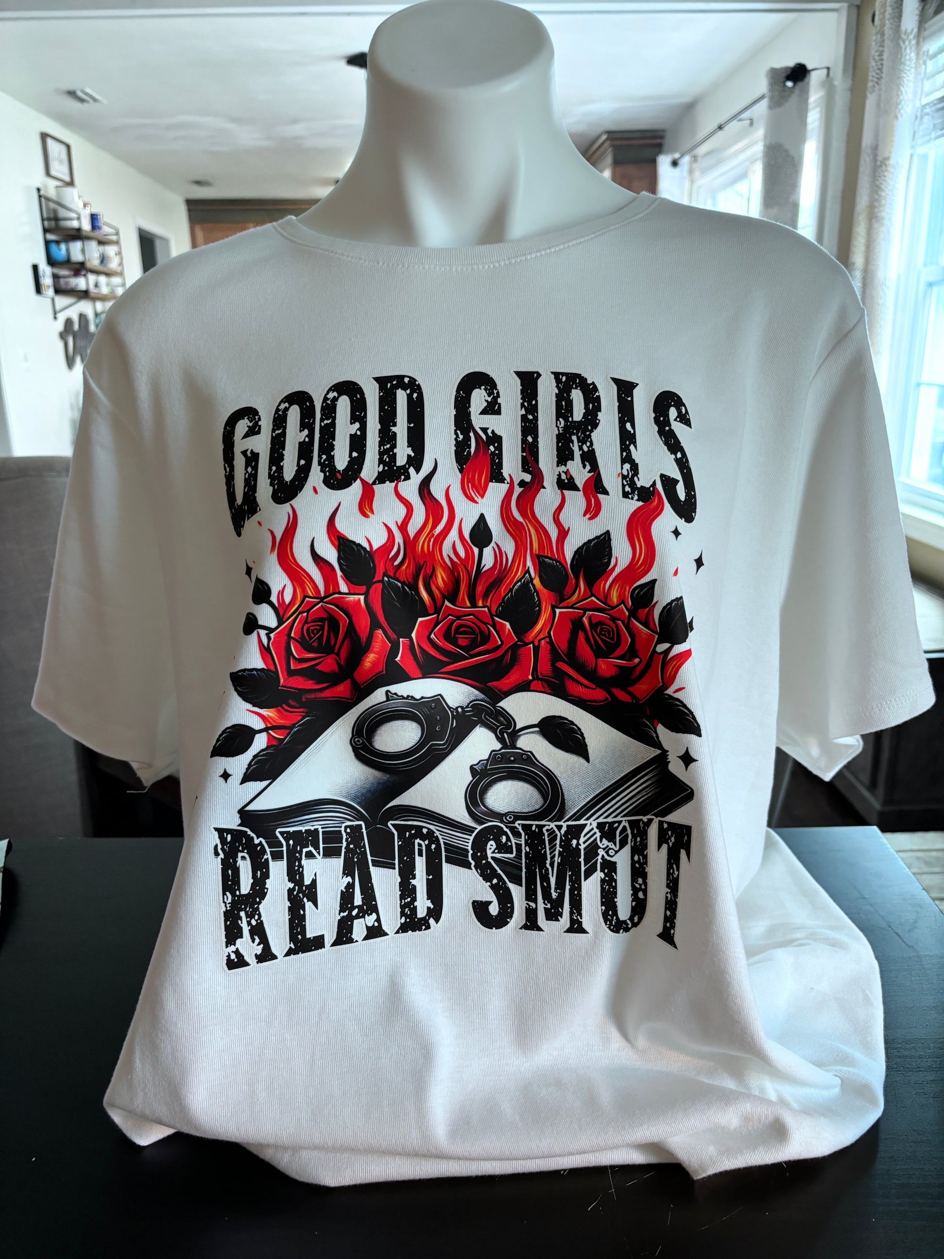 Tired of boring t-shirts? Spice up your look with the cheeky Good Girls Read Smut tee!
