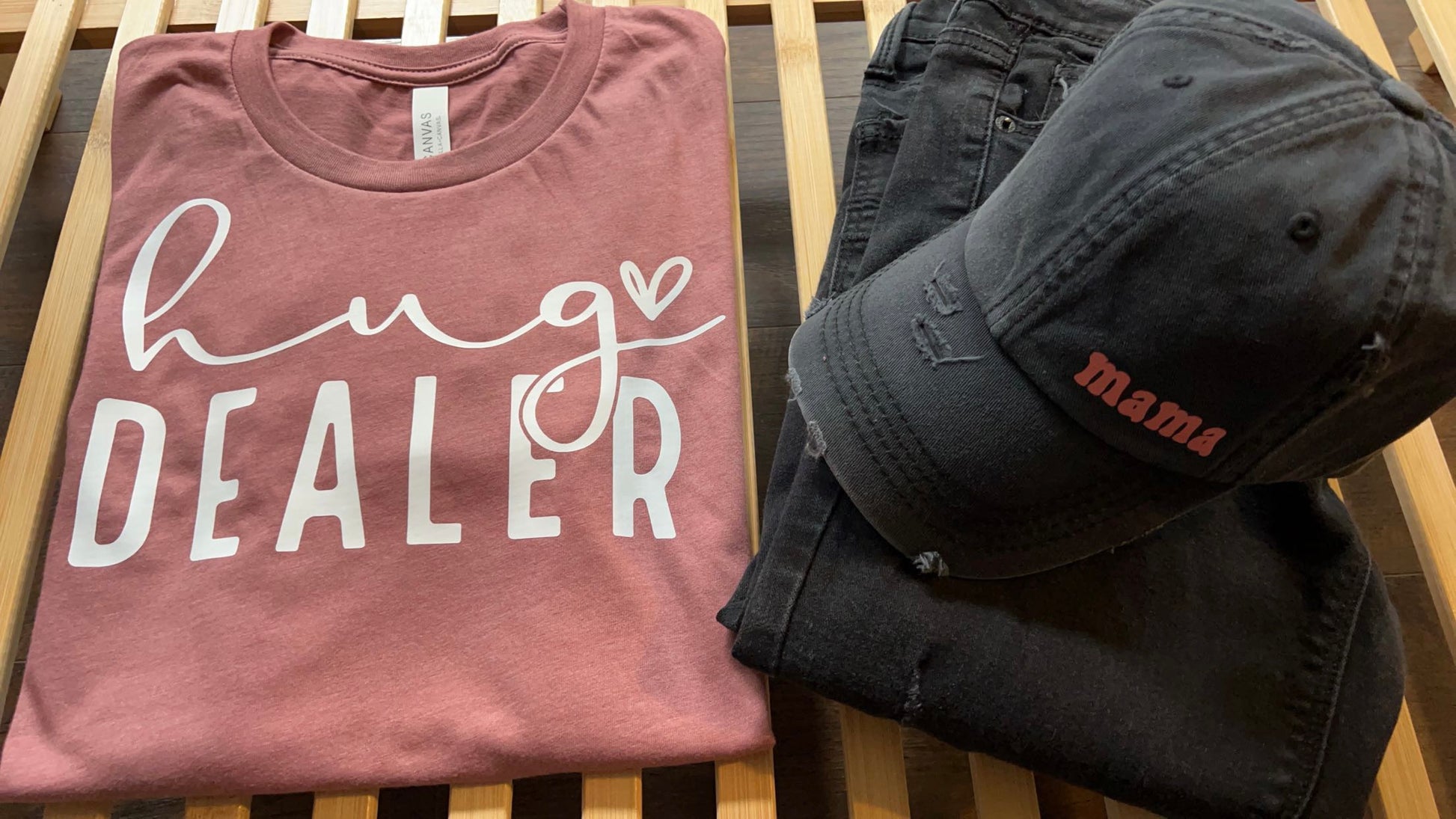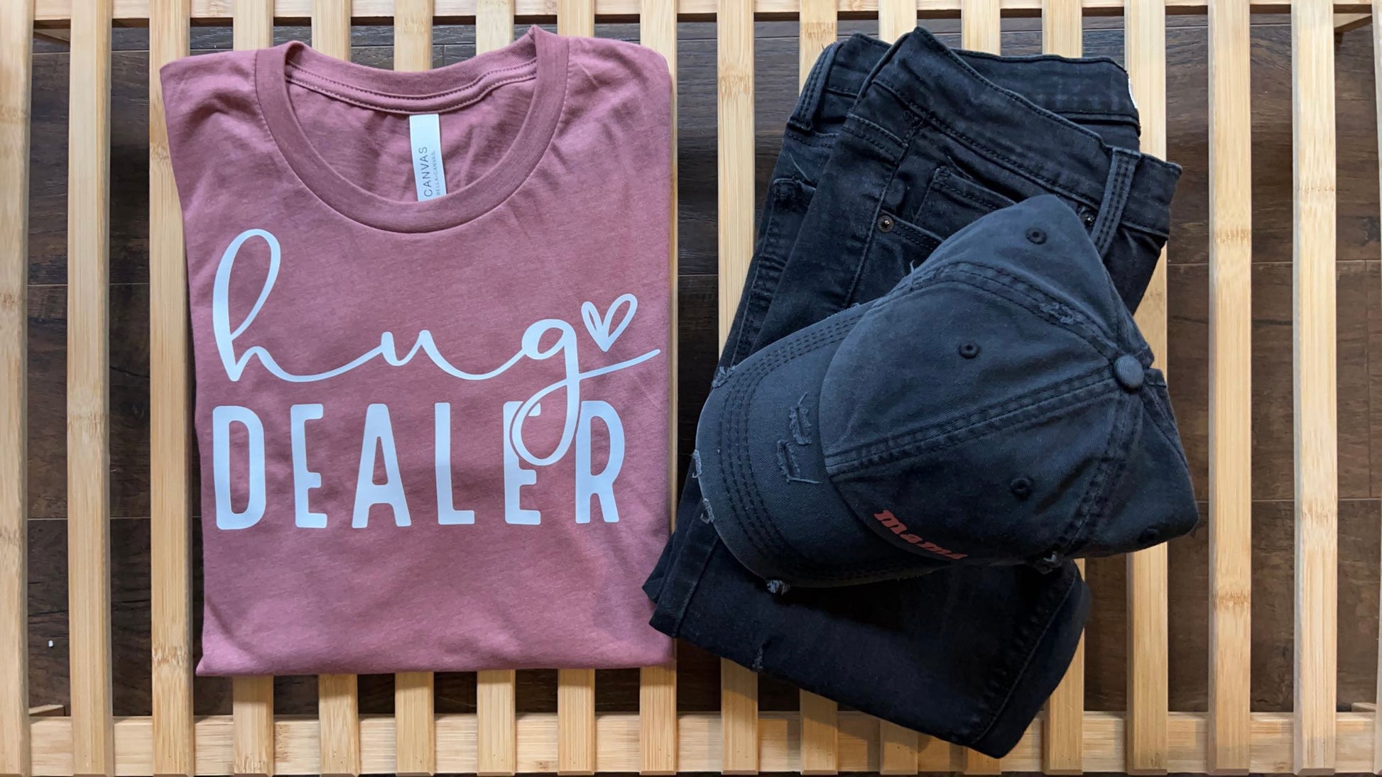Customized Design: The playful "Hug Dealer" phrase adds a fun touch to your outfit, making it perfect for casual occasions or hanging out with friends.