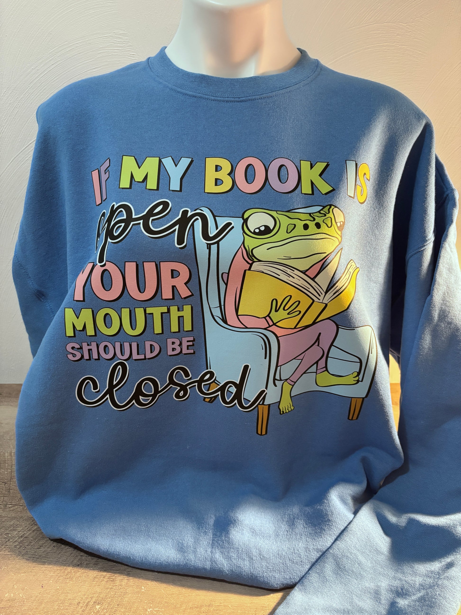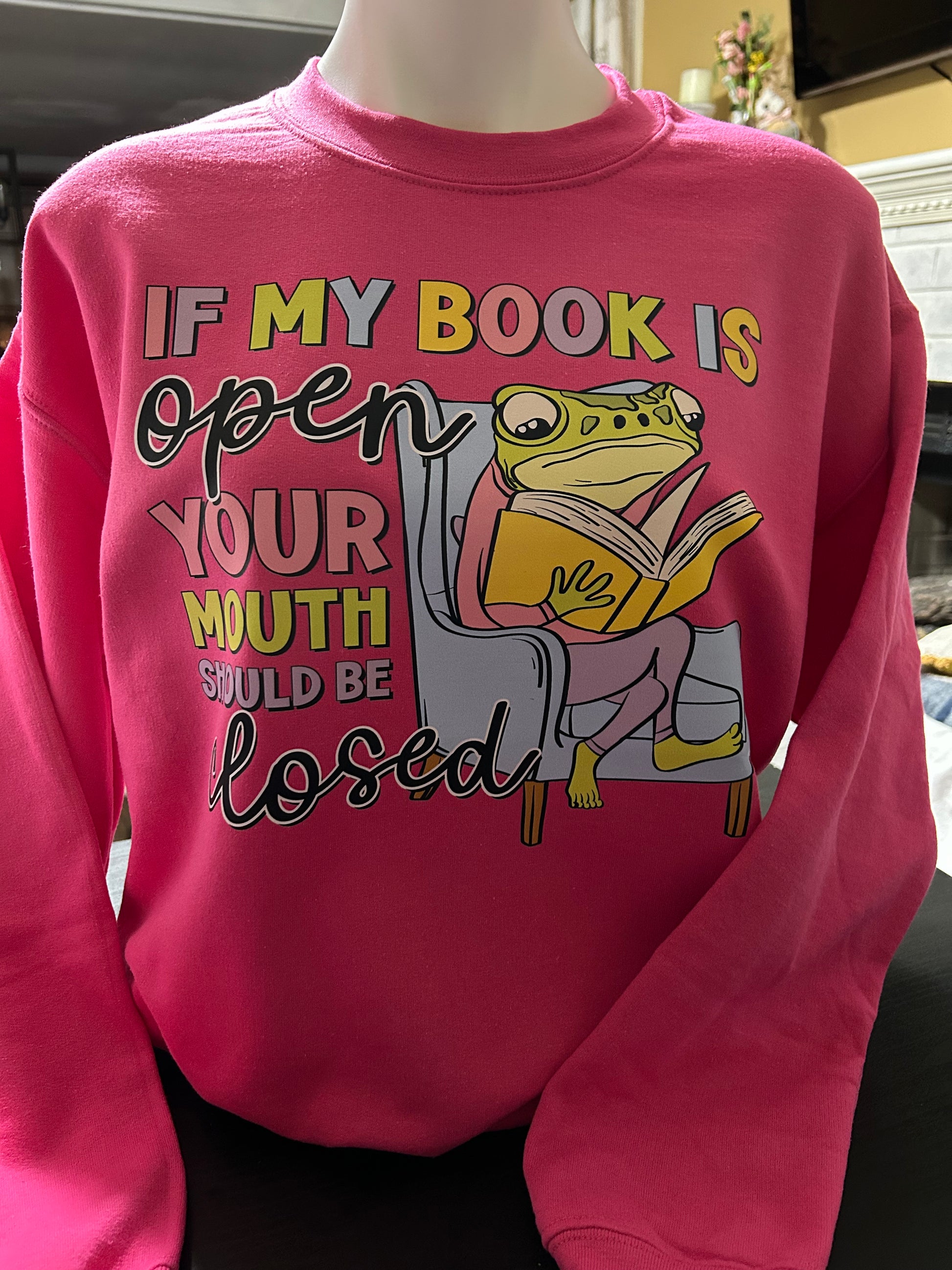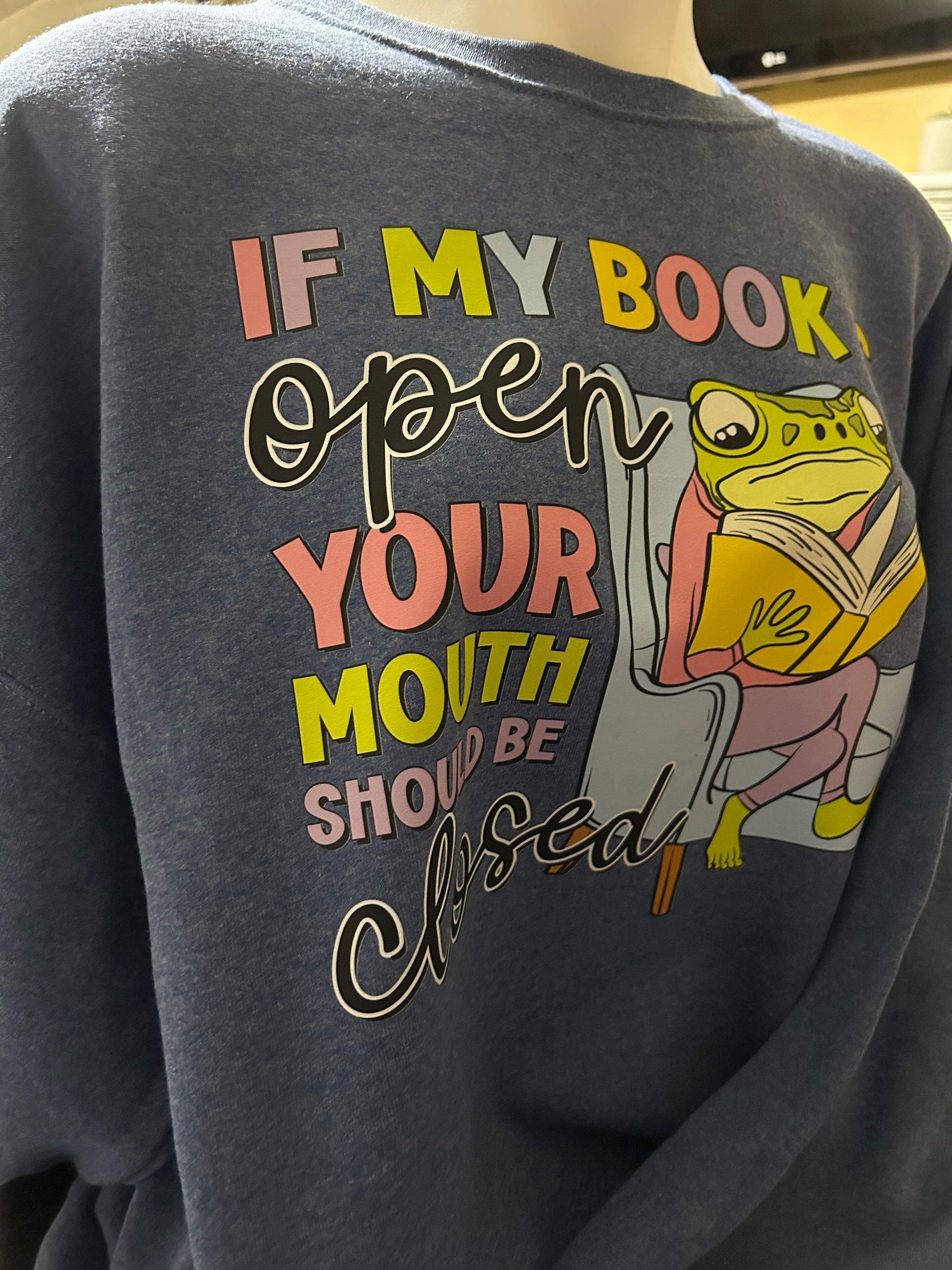 Don’t miss out on your chance to own the If My Book is Open, Your Mouth Should Be Closed Sweater. Order yours today and wear your passion for reading proudly!