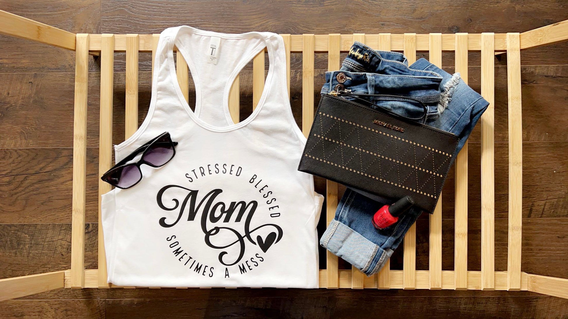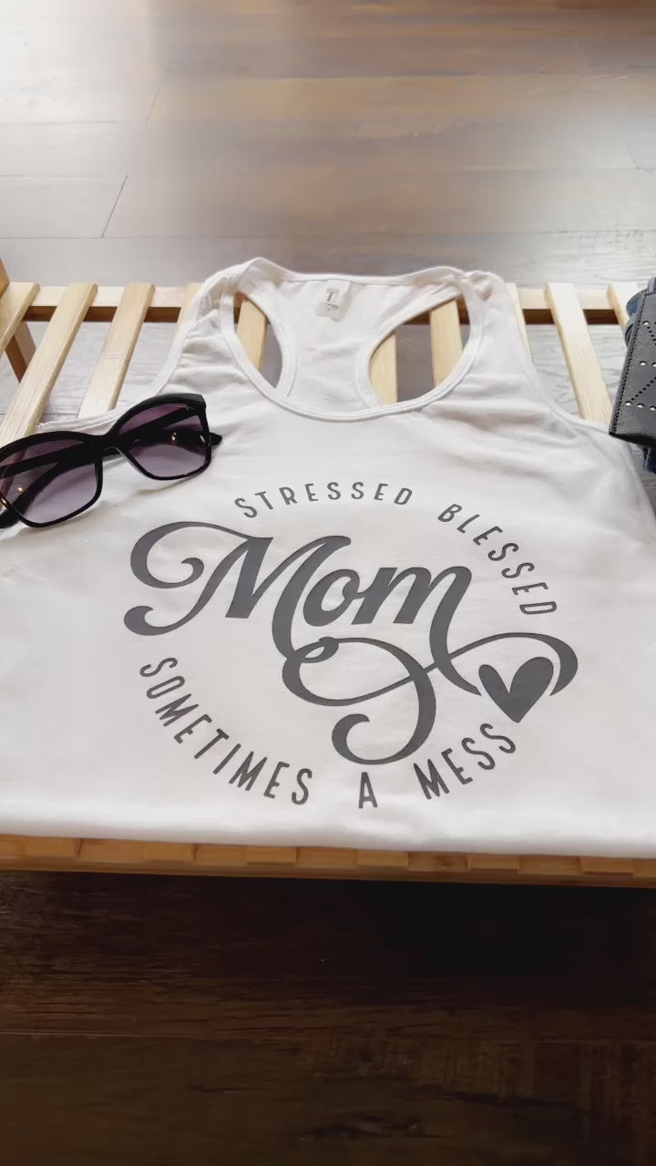 The Stressed Blessed Mess Mom Tank Top is also incredibly versatile. You can dress it up or down depending on your mood or occasion. Pair it with jeans for a casual look or dress it up with a skirt and heels for a night out on the town.