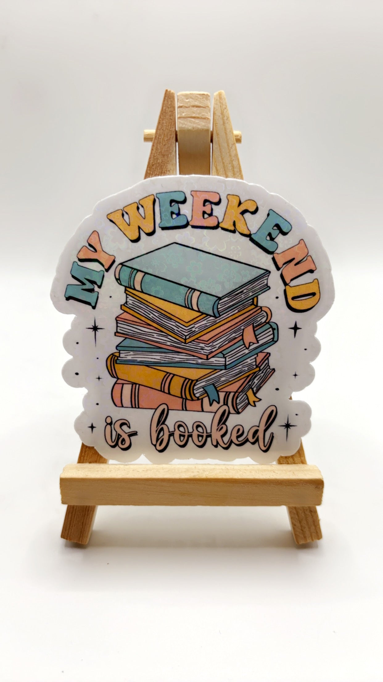Embrace Your Weekend Vibes! Don’t let your weekends go unnoticed. Adorn your favorite items with the My Weekend is Booked Sticker and wear your plans with pride!