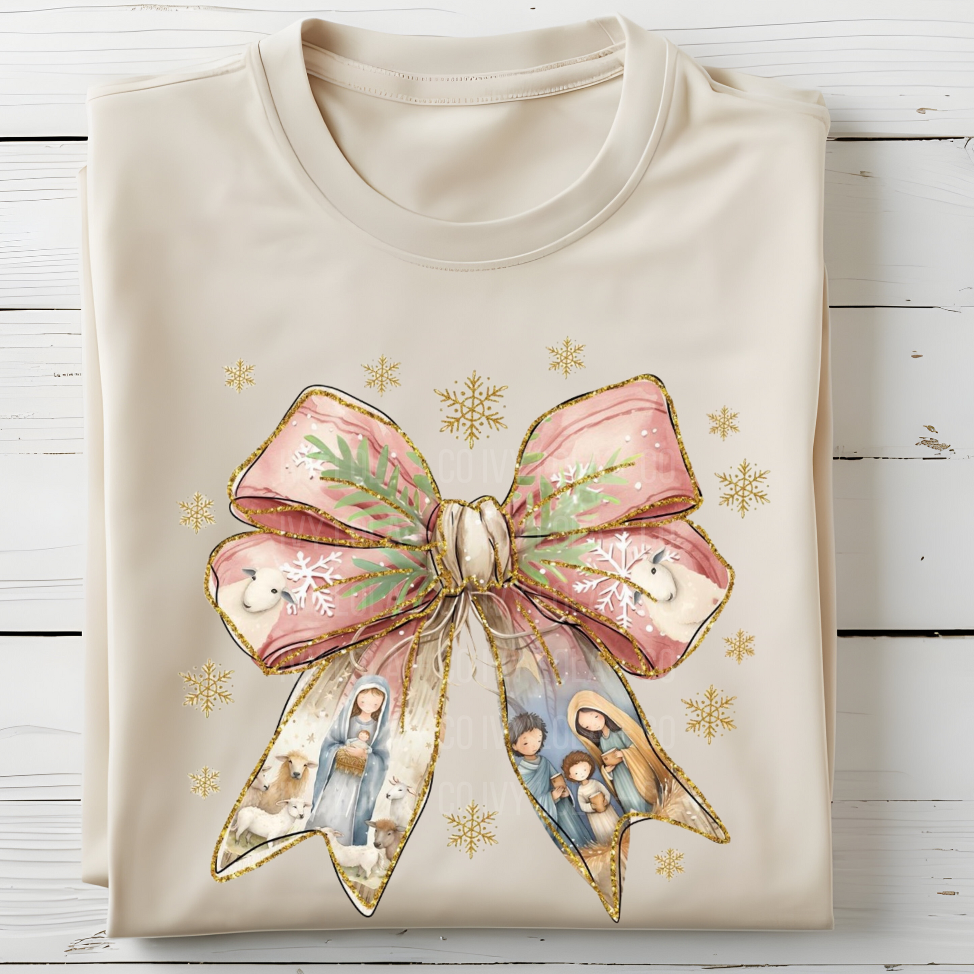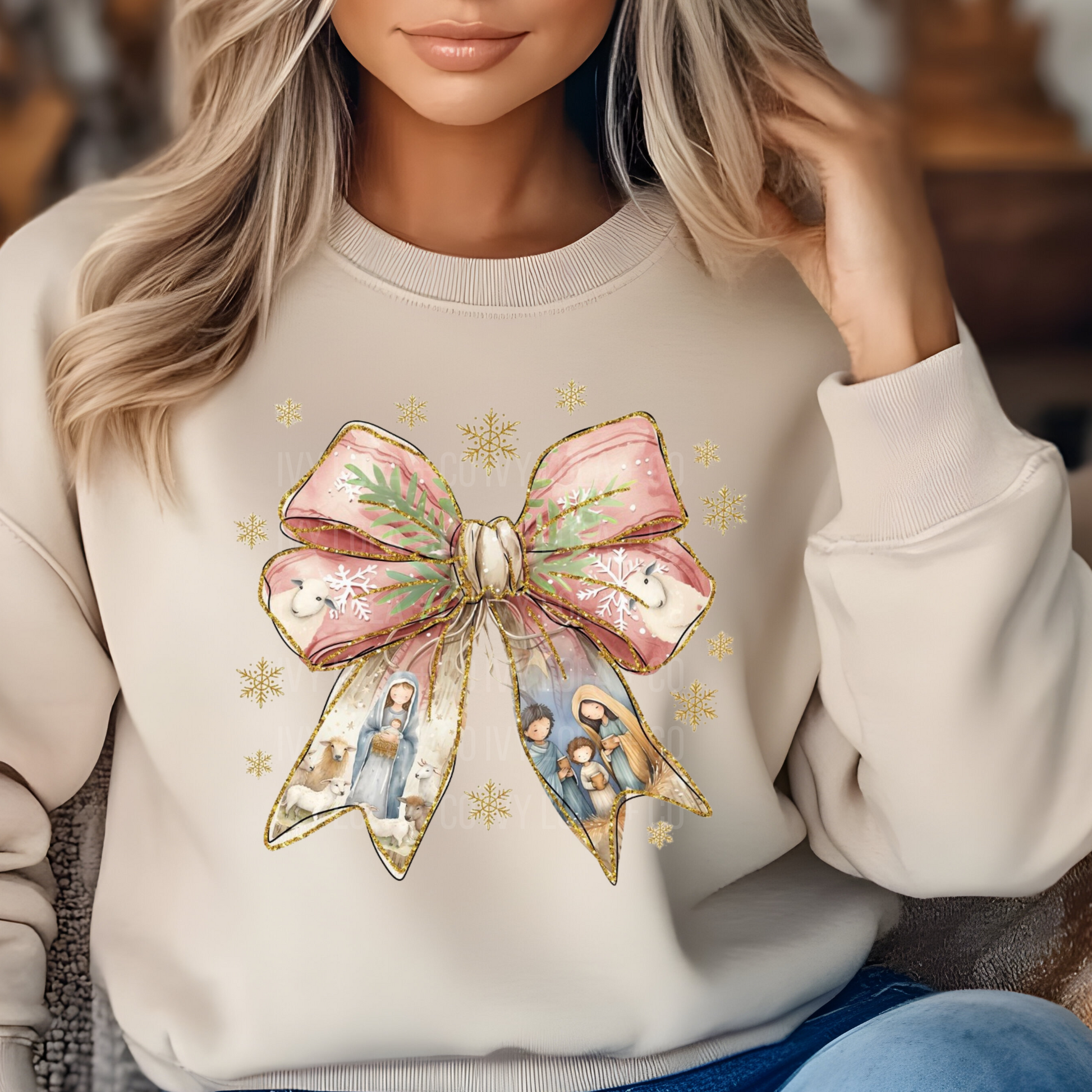 Embrace the warmth and love of the season with the Nativity Bow Christmas Sweater—your go-to choice for festive occasions!