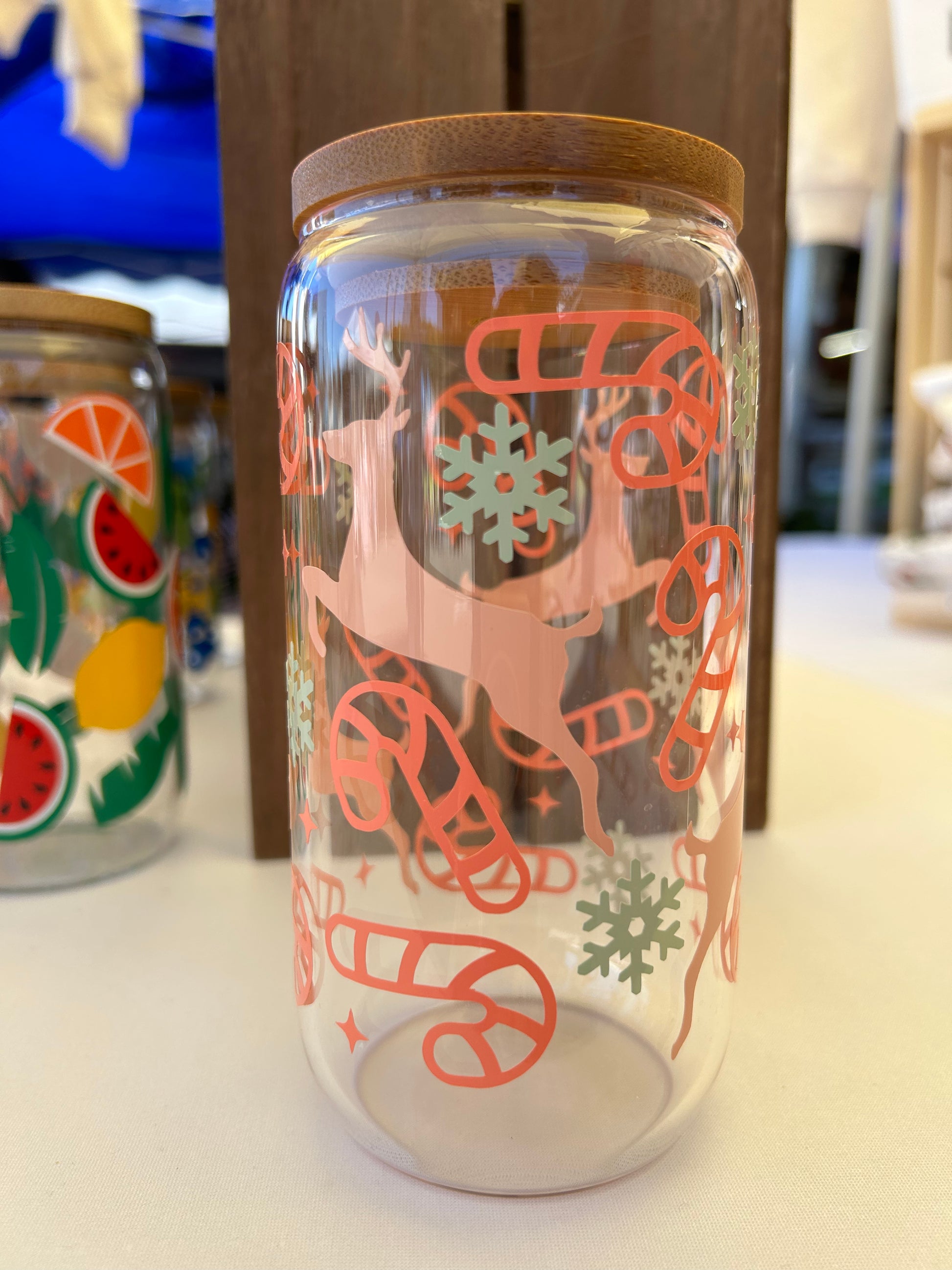 Introducing the Pastel Christmas Reindeer Glass Cup, a delightful addition to your festive collection. This enchanting cup combines charm and functionality, making it perfect for any occasion.