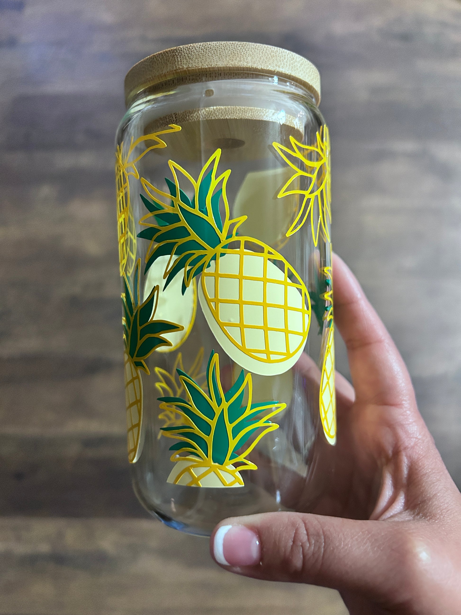 Stylish Design: This 16oz glass coffee cup is wrapped with beautiful pineapples, adding a touch of tropical charm to your drinkware collection.