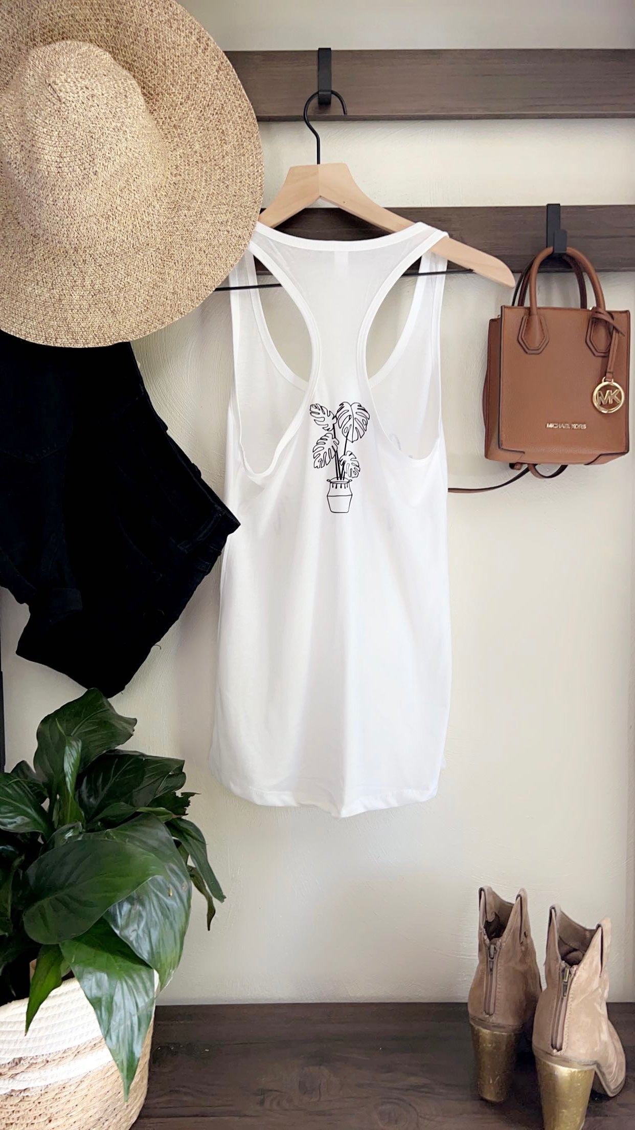 Stylish Design: The front of the tank top features the words “Plant Mama” in bold letters, making it clear that you’re proud of your green thumb. The back of the shirt has a beautiful monstera plant pictured on it, adding an extra touch of style.