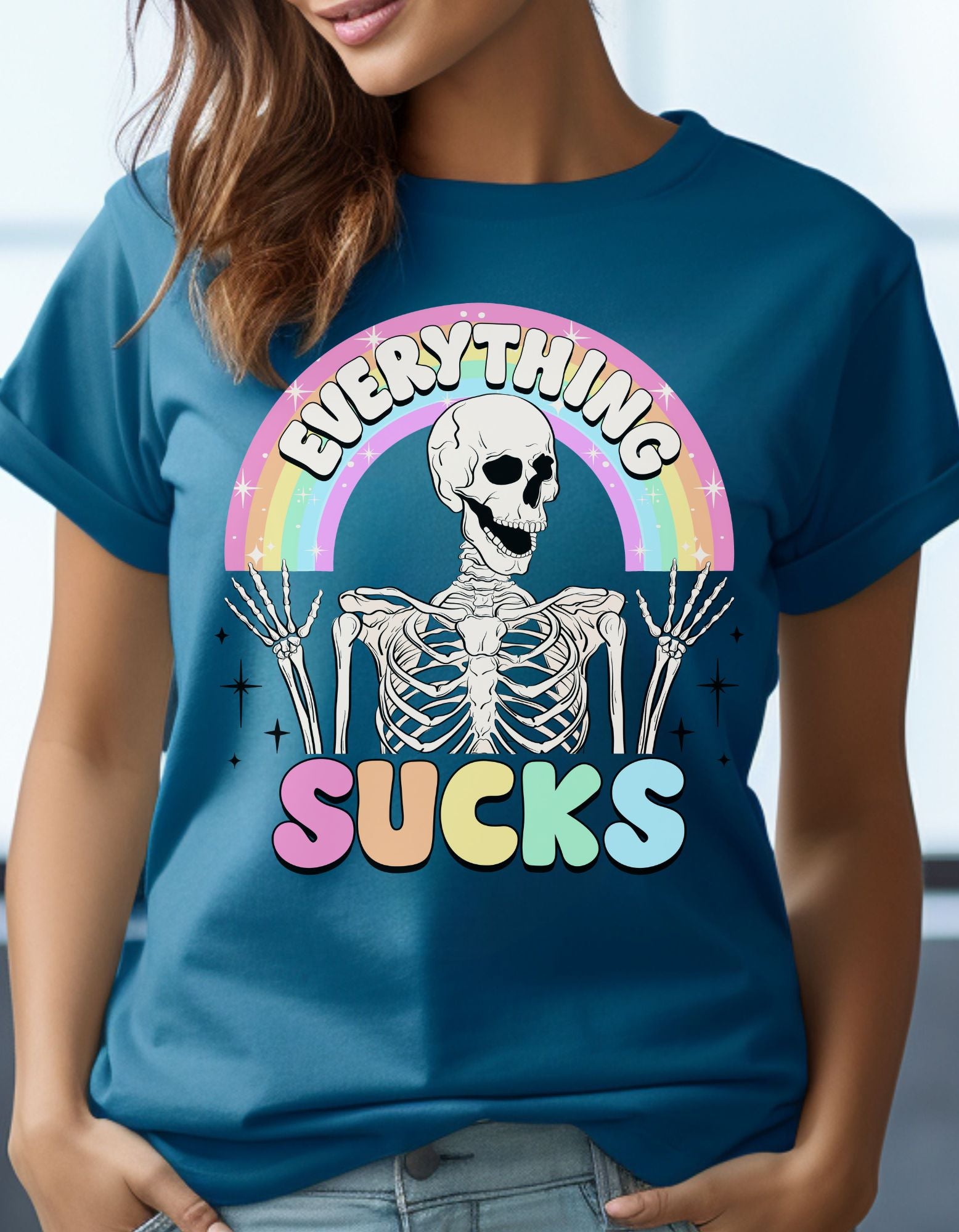 Humorous Vintage Skeleton "Everything Sucks" Graphic Tee