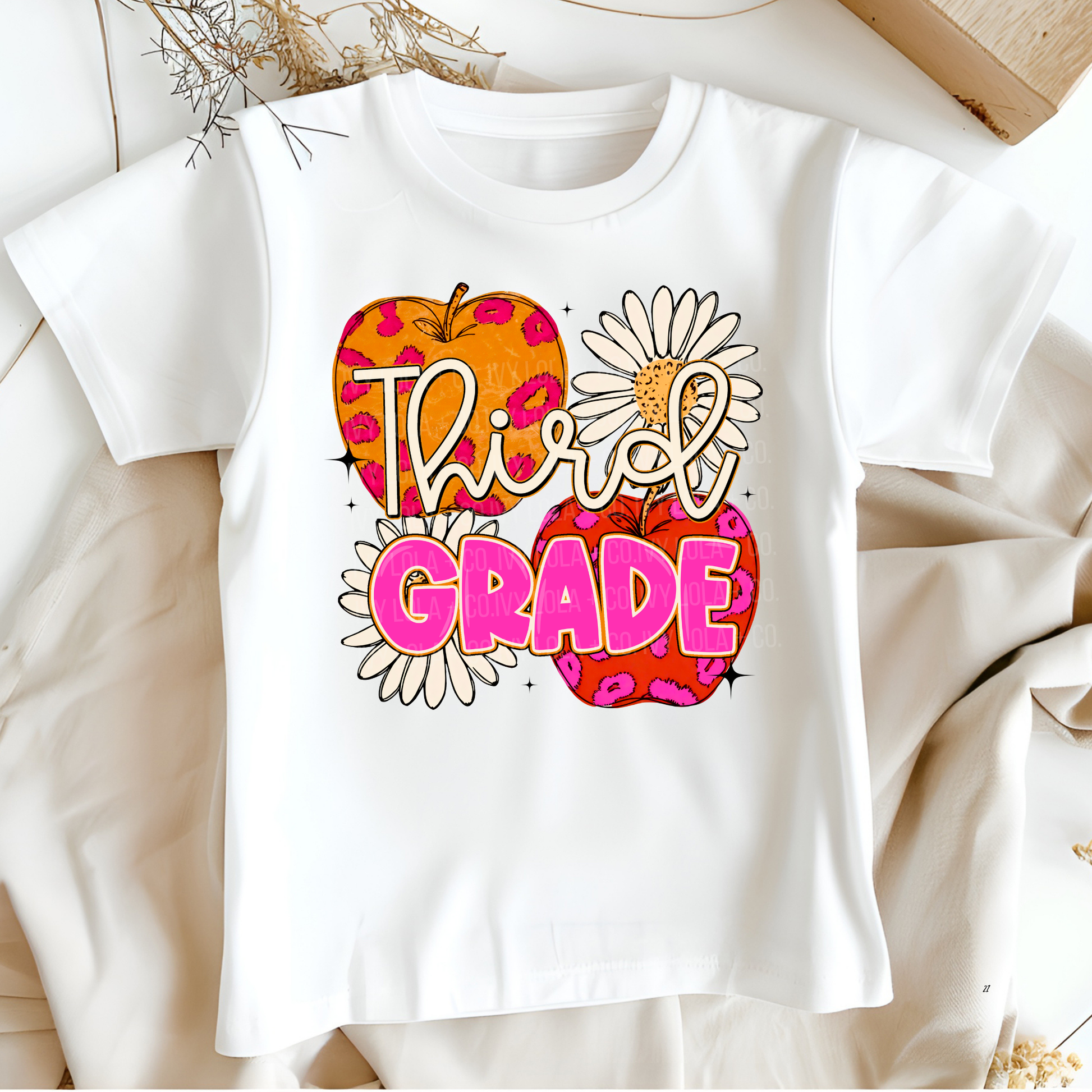 Introducing the School Grade Daisies and Apples Tee, a playful back-to-school apparel essential designed for students who value comfort and style. This tee blends a charming school-themed graphic with everyday wear, making it easy to mix and match for class, study sessions, and after-school activities.