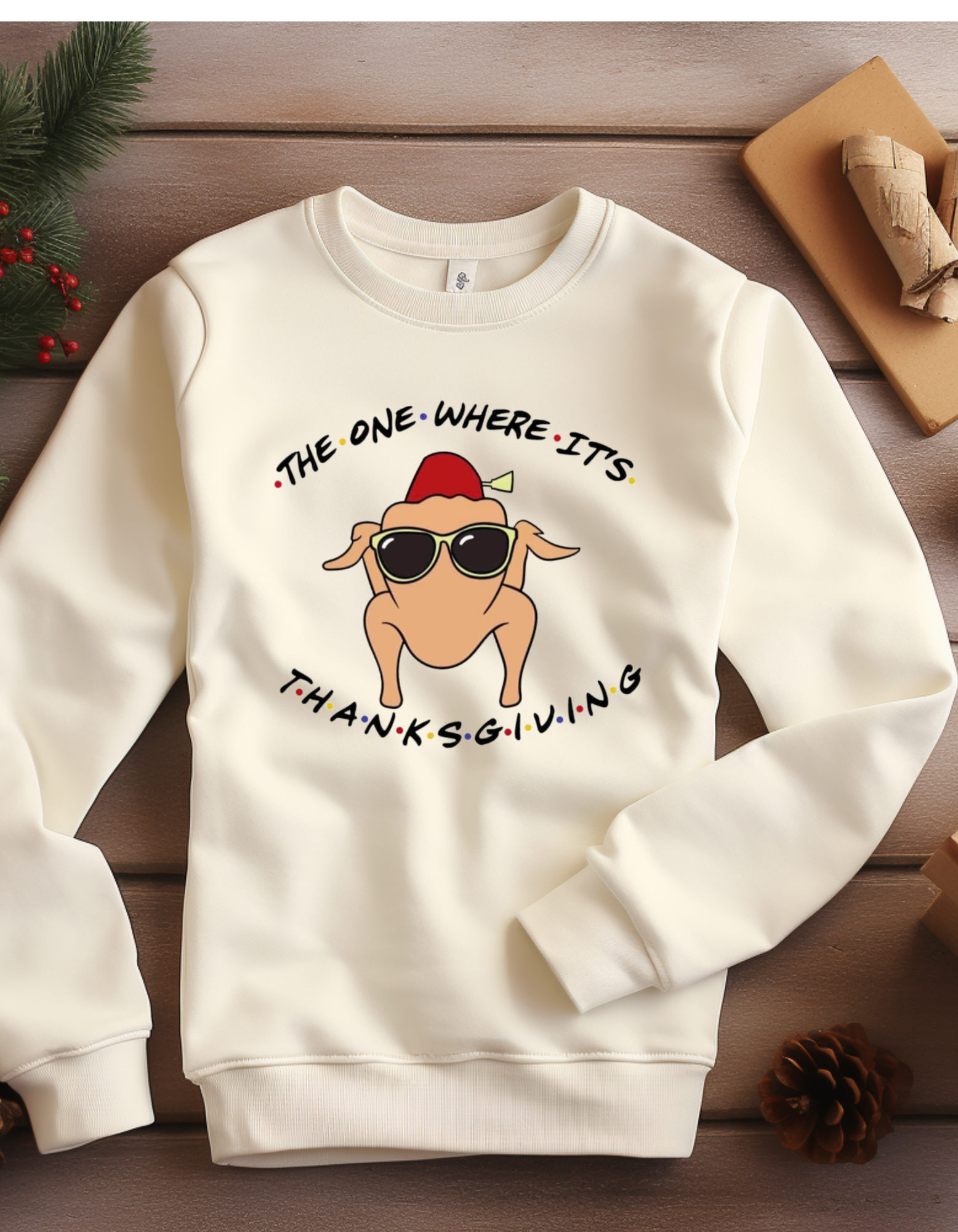 This Thanksgiving sweatshirt is the perfect addition to your holiday wardrobe. Featuring a vivid memory from a classic show, this custom design is sure to bring back nostalgic memories. The vibrant, long-lasting colors make this design stand out and will keep you looking stylish for years to come. Made with high-quality materials, any option is both comfortable and durable. Wear it to your Thanksgiving dinner or any holiday gathering to show off your festive spirit. Don't miss out on this must-have holiday item!
